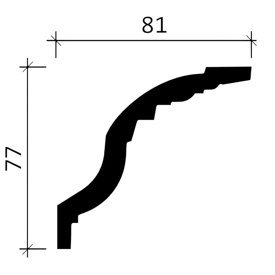 - Corniche, dimensions: 200 cm x 8,1 cm x 7,7 cm. La surface est prétraité
