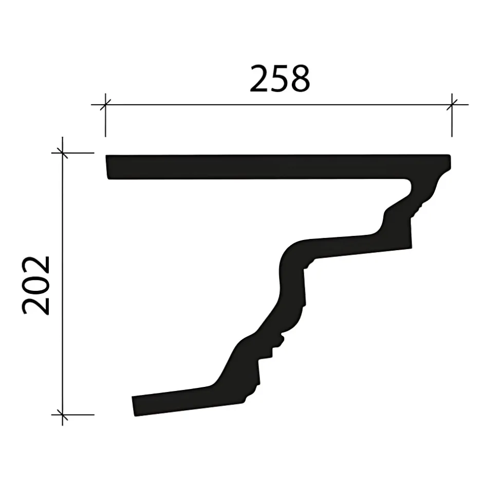 - Corniche, dimensions: 200 cm x 25,8 cm x 20,2 cm. La surface est prétraité