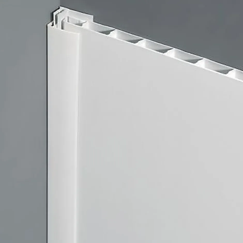 Profilé finition d’extrémité clipsable blanc. Longueur 2,60m, adapté pour des lambris PVC épaisseur 8 ou 10mm.