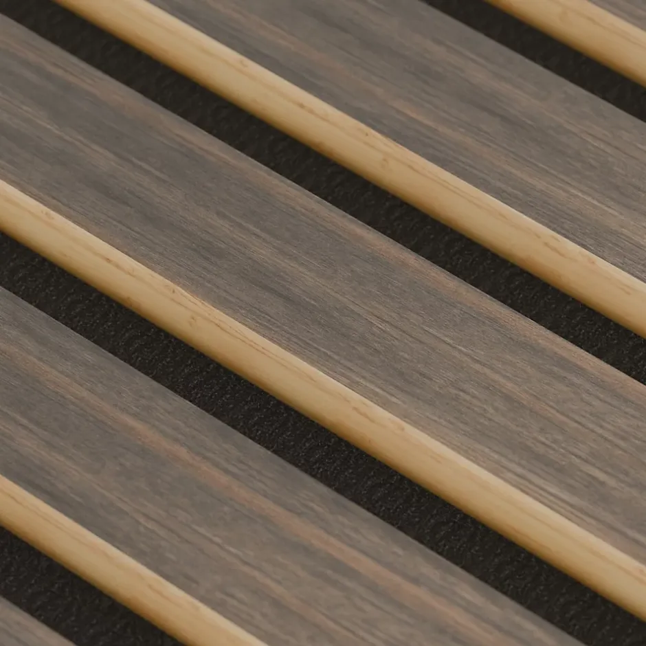Panneau acoustique souple décoratif – Performance sonore et design contemporainCe panneau acoustique souple est conçu pour améliorer le confort sonore de vos espaces tout en apportant une finition décorative moderne. Il convient aussi bien aux environnements résidentiels que professionnels.Caractéristiques techniquesDimensions : 240 × 60 cmÉpaisseur : 1,1 cmSurface couverte : 1,44 m² par panneauPoids : 5 kgMatériaux : feutrine acoustique et lattes en MDF plaquéesFixation : collage (colle silicone) ou vissageUtilisation : traitement et correction acoustiqueCompatibilité : tous types de pièces (habitation, bureau, locaux professionnels)Structure et matériauxLe panneau est composé de deux couches complémentaires :Une base en feutrine acoustique assurant une absorption efficace des bruits et une réduction des nuisances sonores.Des lattes décoratives en MDF (panneau de fibres à densité moyenne), recouvertes d’un placage esthétique et résistant.Performances acoustiquesGrâce à sa structure multicouche, ce panneau permet de réduire les résonances et la réverbération.Il est adapté à de nombreux usages : salons, bureaux, salles de réunion, open spaces, studios, home cinéma ou espaces de travail.Installation simple et rapideSa conception souple et son poids réduit permettent une installation facile sur murs ou plafonds.La fixation peut être réalisée par collage à la colle silicone ou par vissage, sans encadrement spécifique ni outillage complexe.Conseil de découpe : pour ajuster les panneaux aux dimensions souhaitées, l’utilisation d’une scie circulaire est recommandée pour une coupe nette et précise.EntretienDépoussiérage à l’aide d’un balai ou d’un aspirateur avec embout douxNettoyage ponctuel avec un chiffon légèrement humide et bien essoréNe pas utiliser de produits abrasifs