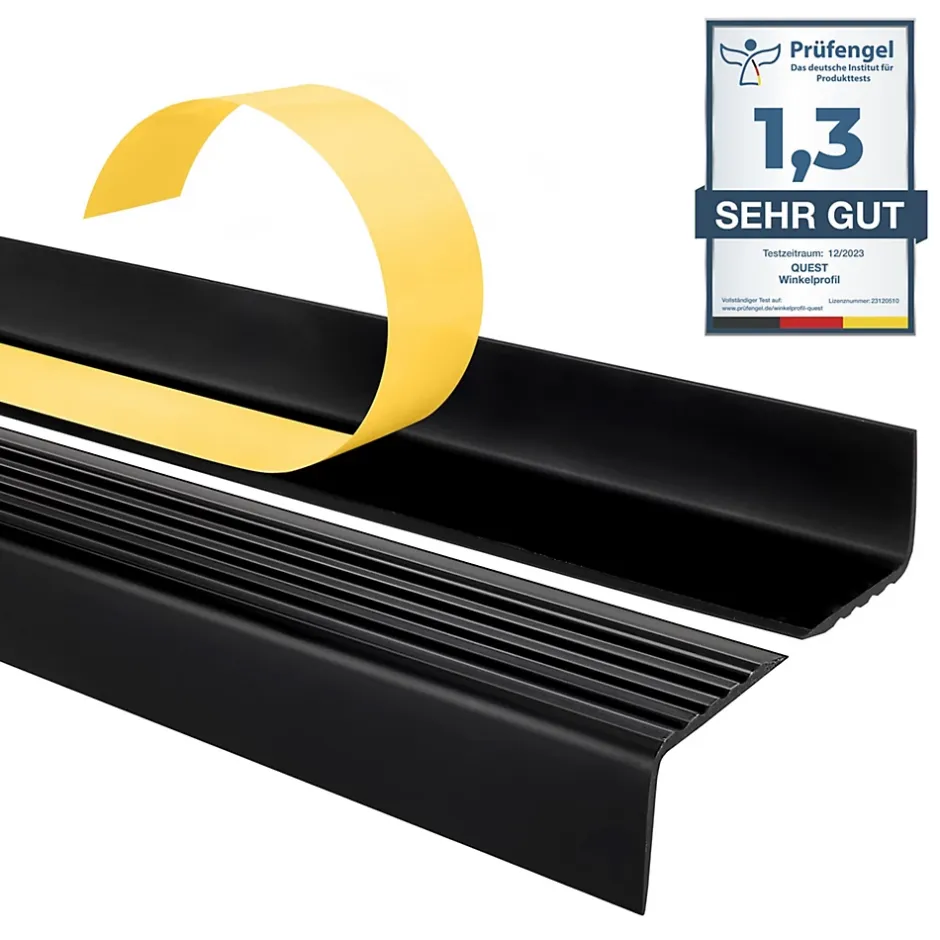 Quest Nez de marche PVC 40x25mm, , profilé d’escalier ND, auto-adhésif, antidérapant, d’escalier-protection, noir, 0.7m