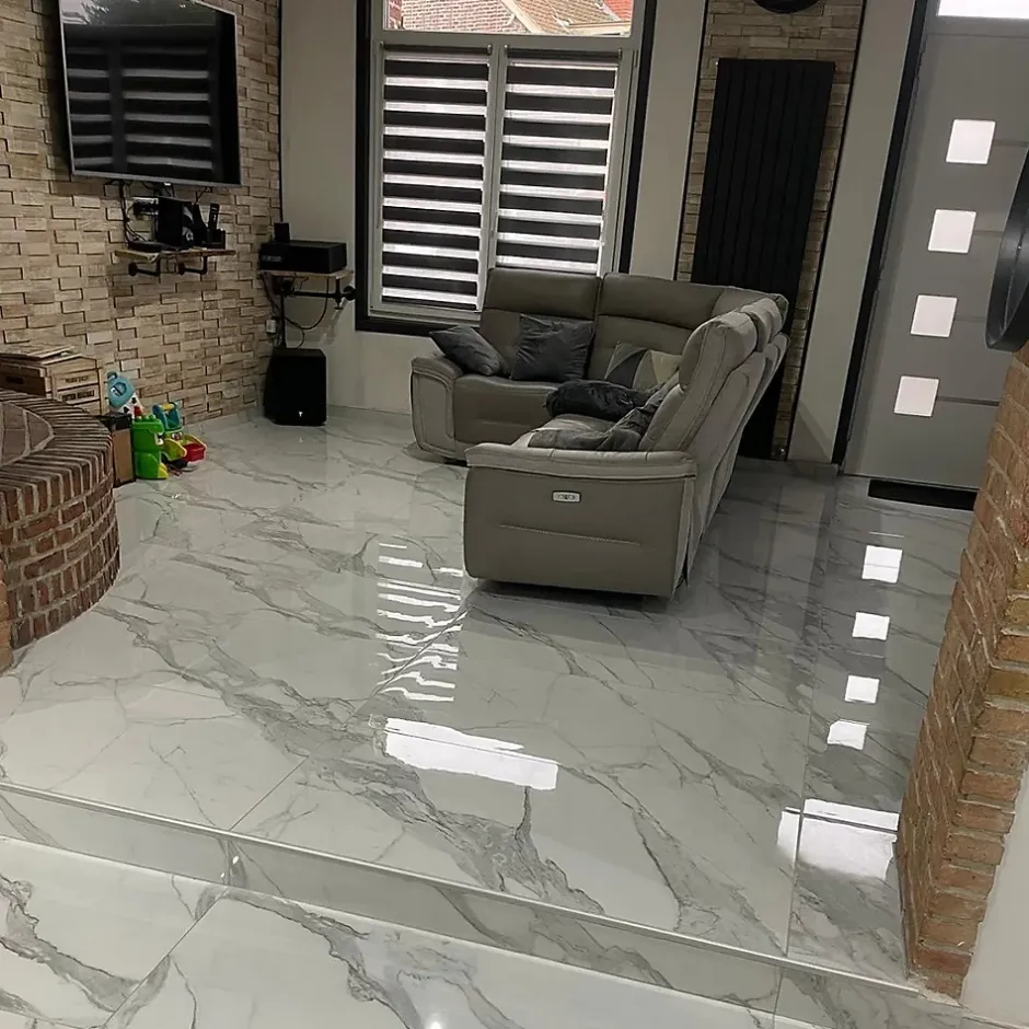 1 quantité dans votre panier = 1 carton de 2 carreaux de 60x120cm = 1,44m². Succombez par la beauté de ce carreau de carrelage blanc CALACATTA rectifié et brillant de taille 60x120cm en grès cérame. :Il apportera à votre cuisine, salle de bain et séjour une élégance exceptionnelle. Il offrira un effet luxueux et sophistiqué à votre intérieur. Informations techniques: : – Carrelage certifié CE – Épaisseur : 9mm – Surface d’un carreau : 0,72m2 – Pose sur sol et mur – Joints conseillés entre 1 et 2 mm – 1 carton : 2 carreaux (1,44m2) / 29 kg – 1 palette: 46,08m2 / 32 cartons / 928 kg Facilité d’entretien: : Le carrelage est généralement facile à nettoyer et à entretenir. Il suffit de passer un chiffon humide ou d’utiliser un produit de nettoyage doux pour le garder propre et en bon état.Convient parfaitement pour les sols et les murs, en intérieur. Les bords rectifiés permettent d’appliquer des joints très fins entre 1 et 2 mm quasiment invisibles à l’œil nu. Le délai de livraison mentionné s’effectue en jours ouvrés, excluant les samedis, dimanches et jours fériés. : Le transporteur vous contactera pour convenir d’une date de rendez-vous. :