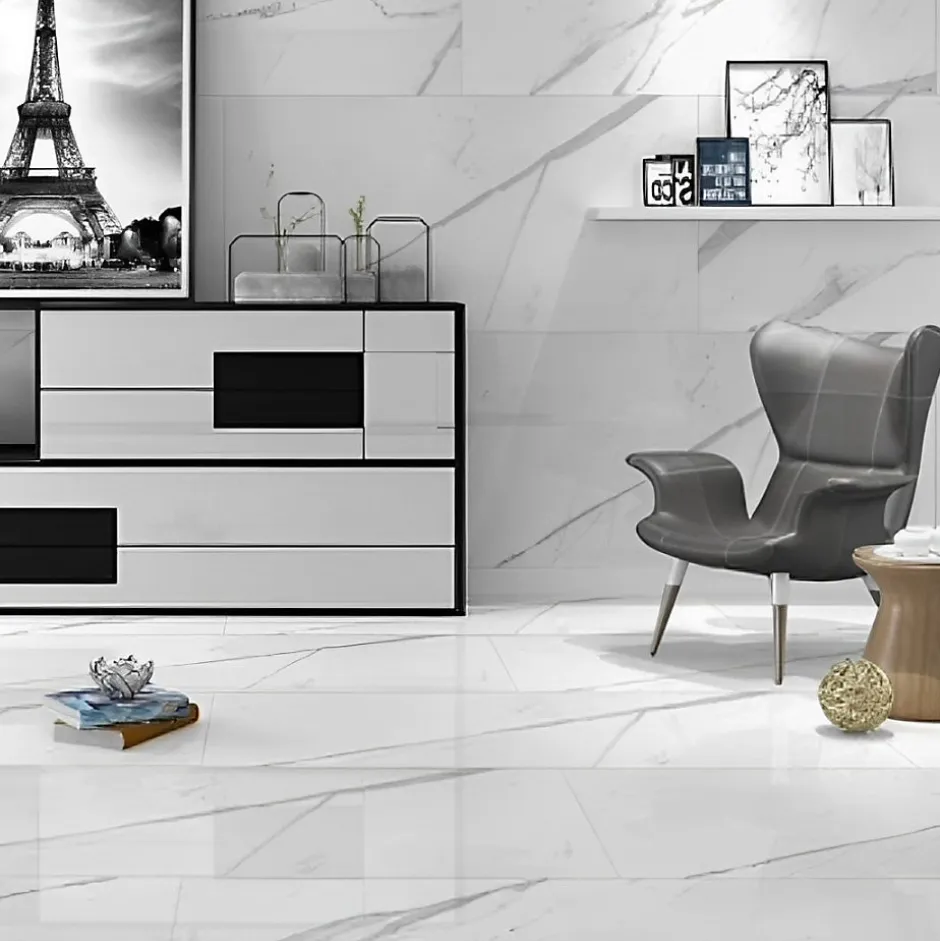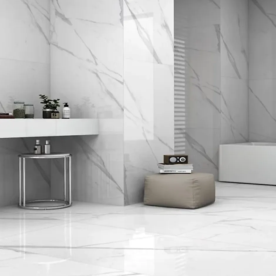 1 quantité dans votre panier = 1 carton de 2 carreaux de 60x120cm = 1,44m². Succombez par la beauté de ce carreau de carrelage blanc STATUARIO rectifié et brillant de taille 60x120cm en grès cérame. Il apportera à votre cuisine, salle de bain et séjour une élégance exceptionnelle. Il offrira un effet luxueux et sophistiqué à votre intérieur. Informations techniques: : – Carrelage certifié CE – Épaisseur : 9mm – Surface d’un carreau : 0,72m2 – Pose sur sol et mur – Joints conseillés entre 1 et 2 mm – 1 carton : 2 carreaux (1,44m2) / 29 kg – 1 palette: 46,08m2 / 32 cartons / 928 kg Facilité d’entretien: : Le carrelage est généralement facile à nettoyer et à entretenir. Il suffit de passer un chiffon humide ou d’utiliser un produit de nettoyage doux pour le garder propre et en bon état.Convient parfaitement pour les sols et les murs, en intérieur. Les bords rectifiés permettent d’appliquer des joints très fins entre 1 et 2 mm quasiment invisibles à l’œil nu. Le délai de livraison mentionné s’effectue en jours ouvrés, excluant les samedis, dimanches et jours fériés. : Le transporteur vous contactera pour convenir d’une date de rendez-vous. :