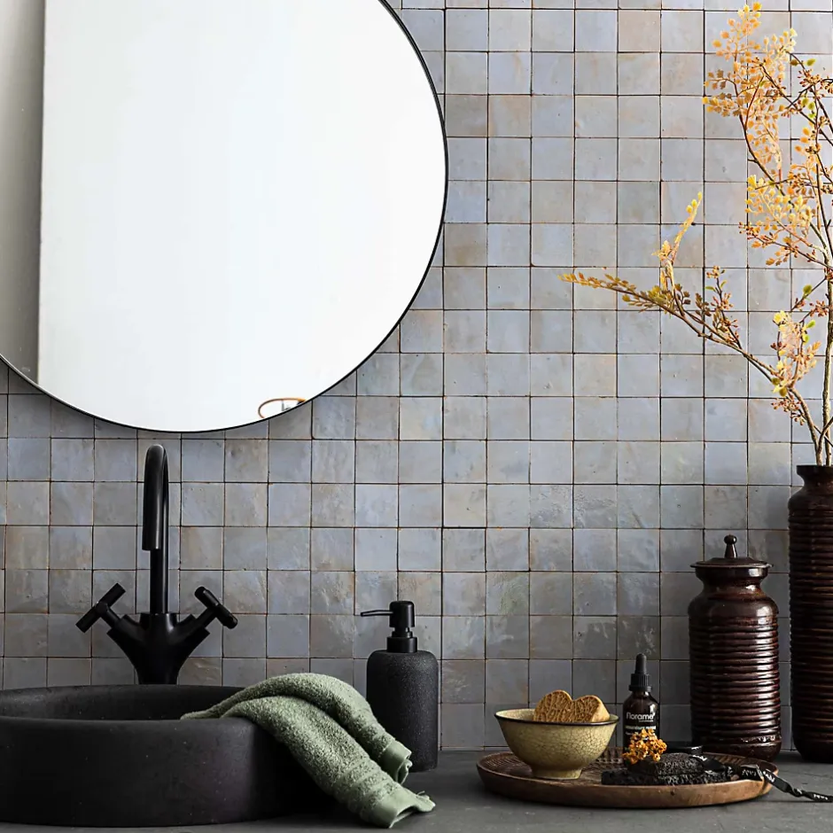 – DESCRIPTION -Cette mosaïque de Carrelage Zellige Marocain s’intégrera à la perfection dans vos aménagements de cuisine ou de salle de bains.Matière : Terre cuite émailléeCouleur : Bleu GustavienFormat des carreaux : 5×5 cm Format de la plaque : 30×30 cm Epaisseur : 1 cm Finition : Taillé mainOrigine : MarocUtilisation : Intérieur (Mur) Conditionnement : plaques de 30×30 cm soit 0,09 m²- INFORMATIONS -> Du fait de sa fabrication manuelle et artisanale, le zellige est par essence un revêtement imparfait. Les authentiques carreaux de zelliges marocains sont moulés, taillés et émaillés exclusivement à la main selon des méthodes traditionnelles ancestrales. Ces carreaux sont caractérisés par leurs irrégularités et leurs imperfections.Ces particularités purement esthétiques n’altèrent en rien les caractéristiques techniques des produits.En voici une liste non exhaustive :- Eclats sur l’émail ou dans les coins,- Bosses et irrégularités de planéité,- Creux ou trous pouvant laisser apparaitre l’argile,- Craquelures sur la surface de l’émail,- Révélation de l’argile à travers l’émail,- Variations de couleurs, de nuances et de tons,- Variations d’épaisseurs et de dimensions,- Sur trame : irrégularités d’espacements entre les pièces.> Si vous souhaitez un carrelage parfait : alors n’achetez pas de zellige authentique mais reportez vous sur de la céramique industrielle imitation zellige.> Nos photos sont réalisées par des professionnels avec l’objectif de représenter les produits de la façon la plus fidèle possible. Cependant, en fonction de votre écran et des paramètres appliqués, l’aspect et les couleurs du produit sur votre écran peuvent légèrement différer du produit original.- LIVRAISON -Forfait frais de port : tarif unique, sans limite de quantité.