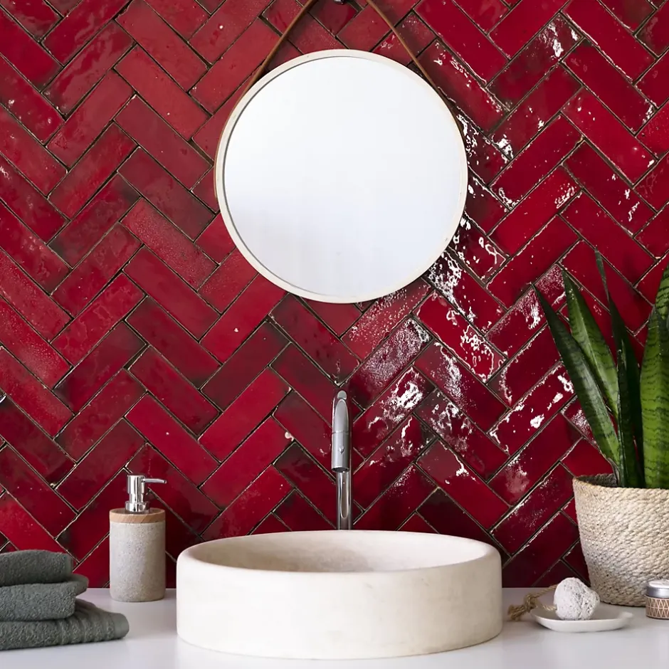 – DESCRIPTION -Ce Carrelage Zellige Marocain est d’une couleur rouge pétillant qui s’intégrera à la perfection dans vos aménagements de cuisine ou de salle de bains.Matière : Terre cuite émailléeCouleur : Rouge PétillantFormat : 5×15 cmEpaisseur : 1,2 cm Finition : BrutOrigine : MarocUtilisation : Intérieur (Sol et Mur) Conditionnement : boîtes de 1 m²- INFORMATIONS -> Du fait de sa fabrication manuelle et artisanale, le zellige est par essence un revêtement imparfait. Les authentiques carreaux de zelliges marocains sont moulés, taillés et émaillés exclusivement à la main selon des méthodes traditionnelles ancestrales. Ces carreaux sont caractérisés par leurs irrégularités et leurs imperfections.Ces particularités purement esthétiques n’altèrent en rien les caractéristiques techniques des produits.En voici une liste non exhaustive :- Eclats sur l’émail ou dans les coins,- Bosses et irrégularités de planéité,- Creux ou trous pouvant laisser apparaitre l’argile,- Craquelures sur la surface de l’émail,- Révélation de l’argile à travers l’émail,- Variations de couleurs, de nuances et de tons,- Variations d’épaisseurs et de dimensions,- Sur trame : irrégularités d’espacements entre les pièces.> Si vous souhaitez un carrelage parfait : alors n’achetez pas de zellige authentique mais reportez vous sur de la céramique industrielle imitation zellige.> Nos photos sont réalisées par des professionnels avec l’objectif de représenter les produits de la façon la plus fidèle possible. Cependant, en fonction de votre écran et des paramètres appliqués, l’aspect et les couleurs du produit sur votre écran peuvent légèrement différer du produit original.- LIVRAISON -Forfait frais de port : tarif unique, sans limite de quantité. Avant votre commande Assurez-vous que l’ad