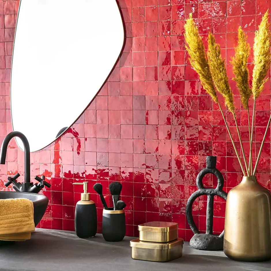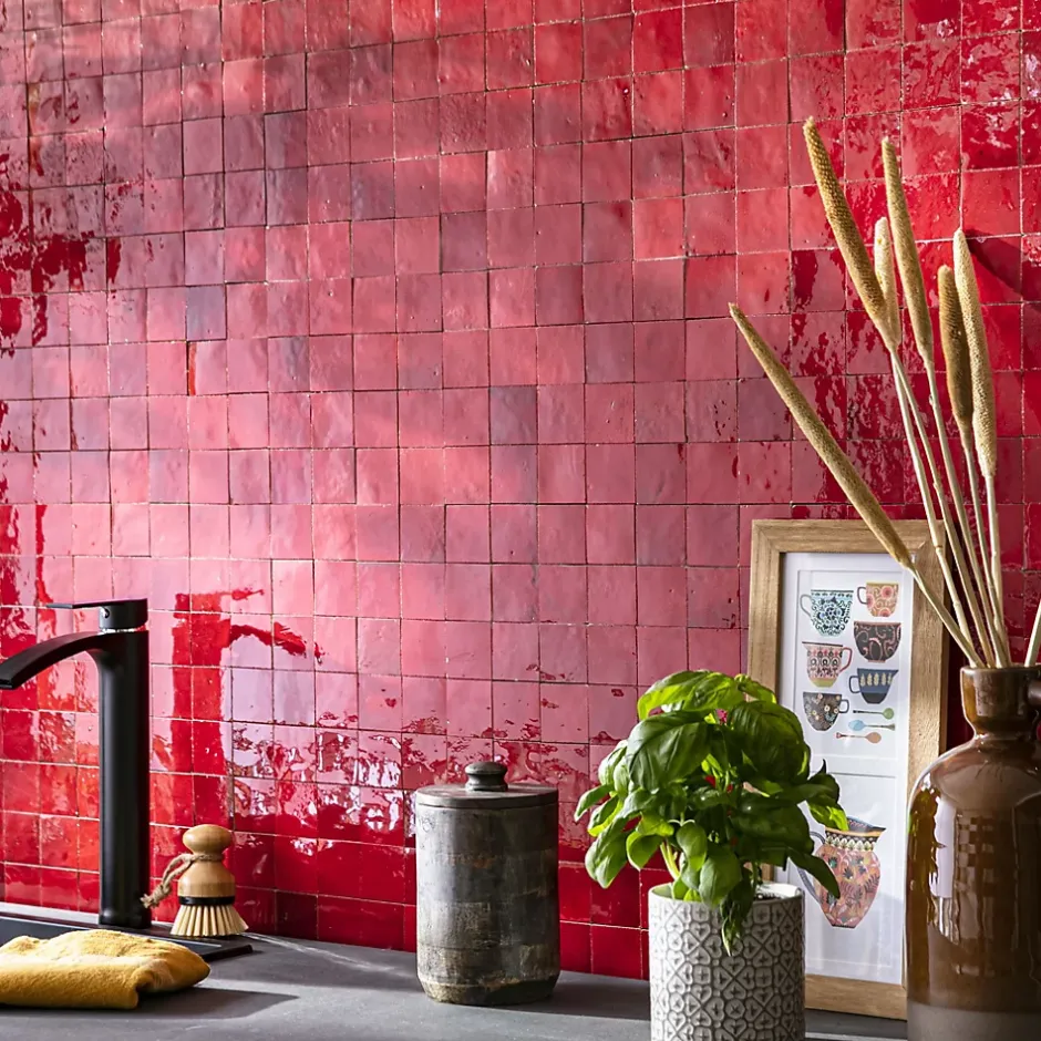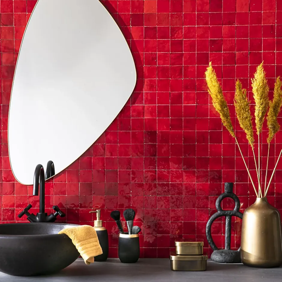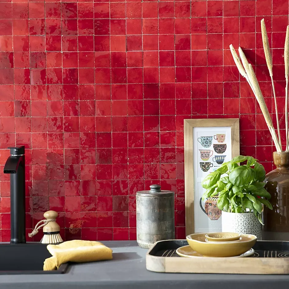 Découvrez notre Carrelage Zellige Marocain Rouge Pétillant 5×5 cm (vendu par plaque de 30×30 cm soit 0,09 m²) – INFORMATIONS -> Ce produit est en Terre cuite. Comme tous les matériaux naturels, des variations sont possibles entre les produits présentés et ceux livrés ainsi qu’entre les produits livrés eux-mêmes. De manière non limitative, ces variations peuvent porter sur la couleur, le veinage, l’aspect, la dimension, l’épaisseur, et autres défauts purement esthétiques qui n’altèrent en rien les caractéristiques techniques des produits.> Ce produit est destiné exclusivement à un usage mural. Tout usage en plan de travail, en table ou en surface en contact avec des aliments est interdite.> Nos photos sont réalisées par des professionnels avec l’objectif de représenter les produits de la façon la plus fidèle possible. Cependant, en fonction de votre écran et des paramètres appliqués, l’aspect et les couleurs du produit sur votre écran peuvent légèrement différer du produit original.