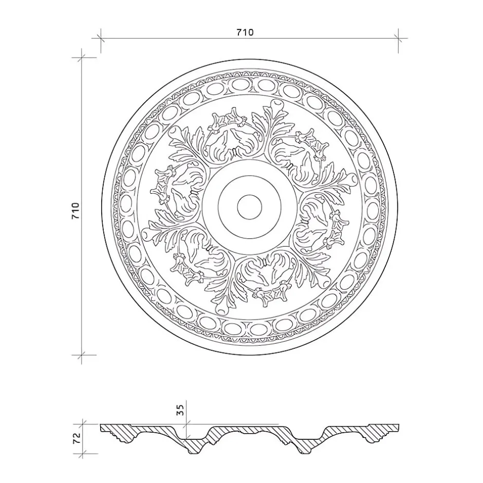 - Rosace, dimensions: 70,6 cm x 70,6 cm x 6,9 cm. La surface est prétraité