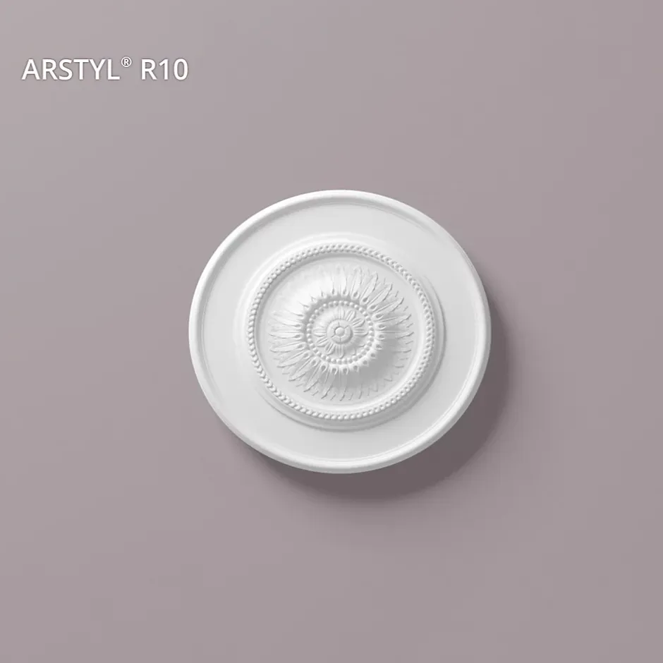 Numéro d’article R10 Type de produit rosace Fabricant NMC Pays / région de production Belgique Collection ARSTYL Modèle no. ARSTYL | R10 Matériau Mousse de polyuréthane rigide Version pas flexible Longueur (cm) 60 Largeur (cm) 60 Hauteur (cm) 5.2 Diamètre Ø (cm) 60 Diamètre max. de perçage (cm) 11 Couleur de base blanc Style intemporel / classique Adhésif approprié ADEFIX (intérieurs, joints, enduit), ADEFIX Plus (pièces humides) Propriétés du matériau léger, solide, indéformable Finition de surface prétraité Approprié pour intérieurs