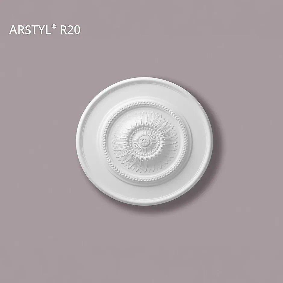 Numéro d’article R20 Type de produit rosace Fabricant NMC Pays / région de production Belgique Collection ARSTYL Modèle no. ARSTYL | R20 Matériau Mousse de polyuréthane rigide Version pas flexible Longueur (cm) 75.5 Largeur (cm) 75.5 Hauteur (cm) 5.5 Diamètre Ø (cm) 75.5 Diamètre max. de perçage (cm) 5 Couleur de base blanc Style intemporel / classique Adhésif approprié ADEFIX (intérieurs, joints, enduit), ADEFIX Plus (pièces humides) Propriétés du matériau léger, solide, indéformable Finition de surface prétraité Apprêt apprêt blanc mat sur base acrylique Approprié pour intérieurs