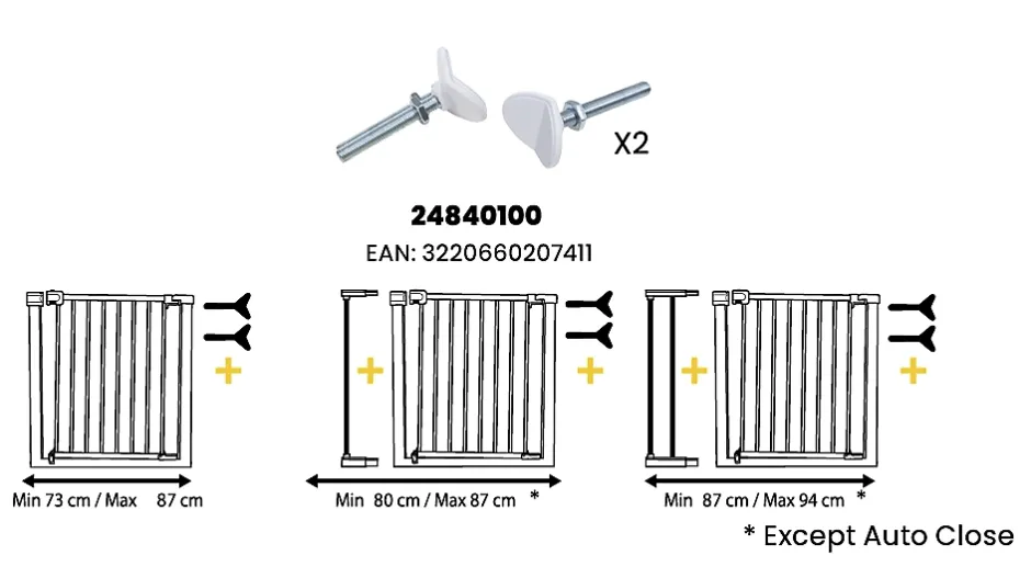 - Compatible pour des ouvertures allant de 73 à 80 cm sans extension, et jusqu’à 136 cm avec extensions
