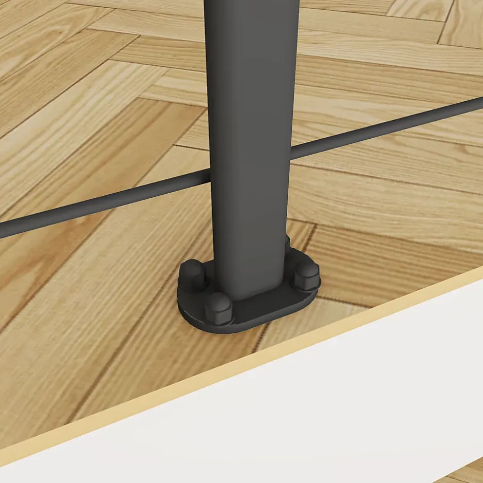 Garde-corps en kit avec main courante et 5 traverses – Aluminium anticorrosion, facile à poser en intérieur ou extérieurComposition du kit :1 passe-main de 2 m5 barreaux de 2 m3 poteaux à fixation à platVisserie et accessoires pour fixation murale, avec bouchons inclusPoints forts :**Matériau premium :** Fabriqué principalement en aluminium de haute qualité, ce garde-corps est résistant à la corrosion, adapté pour une pose en intérieur ou en extérieur.**Sécurité optimale :** La rigidité de l’aluminium offre une excellente sécurité pour vos balcons, escaliers ou mezzanines.**Léger et maniable :** Malgré sa solidité, l’aluminium est léger, facilitant la manipulation et l’installation.**Flexibilité de pose :** La conception modulable permet :De régler la distance entre les poteaux selon vos besoinsUne installation sur des escaliers grâce à une main courante et des traverses inclinées, avec supports mobiles et anneaux réglablesDe couper la main courante et les traverses pour ajuster le kit à votre configuration**Installation simplifiée :** Le système de pose est accessible à tous, avec une notice claire et précise.**Personnalisation :** En cas de besoin, vous pouvez commander des poteaux supplémentaires pour compléter votre structure.Vous pouvez également commander le kit de coudes mobiles réglables pour garde-corpsafin de relier deux tronçons adjacentsDimensions :Longueur du passe mains et des traverses : 2 mHauteur réglable : 100,5 cm à 106,5 cmDistance maximale entre les traverses : 16 cmCouleurs disponibles :NM : Noir matGM : Gris mat