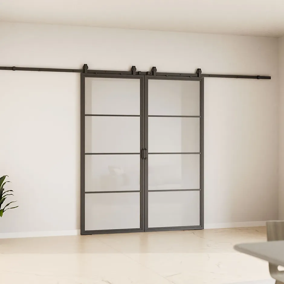 Élément décoratif et moderne à part entière, une porte coulissante intérieure sépare les pièces et crée une ambiance cocooning. Que ce soit à la maison ou au bureau, elle se pose partout, peu importe la taille et le style de votre espace.Entretien : l’aspect satiné est appliqué par sérigraphie. Ce procédé exclusif facilite grandement le nettoyage et permet d’éliminer aisément les traces de doigts, pour une portetoujours impeccable, sans effort.AVANTAGES :Solution gain de place: supprime la surface de dégagement d’une porteFacile : réaménager, agencer et décorer sans gros travaux de rénovationLiberté de mouvement: circulation plus fluide entre les pièces. Facilite les déplacements des personnes à mobilité réduiteSéparation de pièce: limite la propagation des odeurs de cuisine, divise une grande pièce en deuxÉconomie d’énergie: maintient la température dans les piècesSécurité: fini la porte qui claque lors d’un courant d’airParoi vitrée: laisse passer la lumière et donne une sensation de volumeMontage: possible au-dessus d’un encadrement de porte déjà existant grâce à une cale d’épaisseur incluse dans la livraisonSystème coulissant: particulièrement silencieuxSystème coulissant sur roulement à billes: ne nécessite aucun entretien DÉTAILS TECHNIQUES :Porte coulissante d’intérieur en verre satinée, rail en acier inoxydable, 2 vantauxSystème en applique peu encombrant. Coulisse devant le murParoi en verre de sécurité de 4 mm d’épaisseur, bords du verre polisLargeur : 2x 1025 mmHauteur : 2200 mmHauteur totale avec rail : 2289 mmProfondeur : 60 mmLargeur passage max : 2025 mmHauteur passage max : 2195 mmKit de montage avec des vis et des chevilles, poignées, guide au sol, rail en acier inclusLargeur rail : 2x 2000 mmIntervalle porte / mur : 26 mmChariot avec roulement à billesButée d’arrêt double Softclose pour une fermeture tout en douceurPoignées à visserPorte avec trous de montageOuverture de la porte au choix à gauche ou à droite