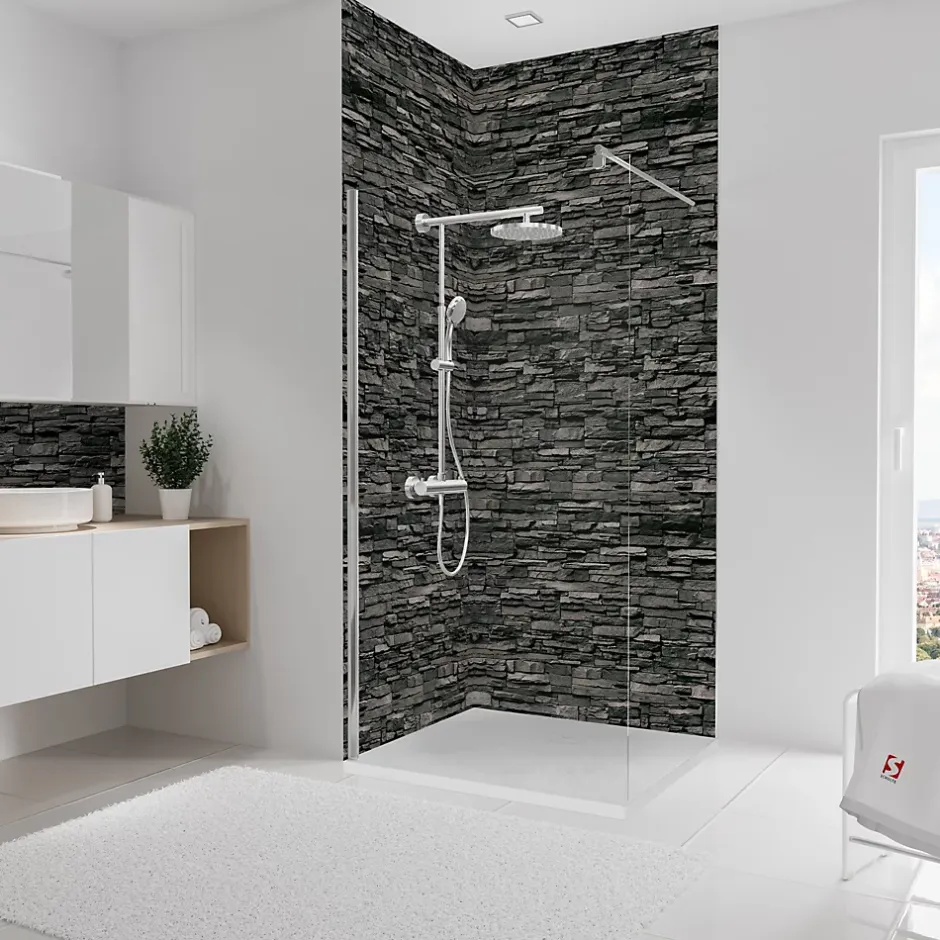 Lot de 2 panneaux muraux de salle de bains l.100×255 cm, décor parement ardoise, Schulte DécoDesign