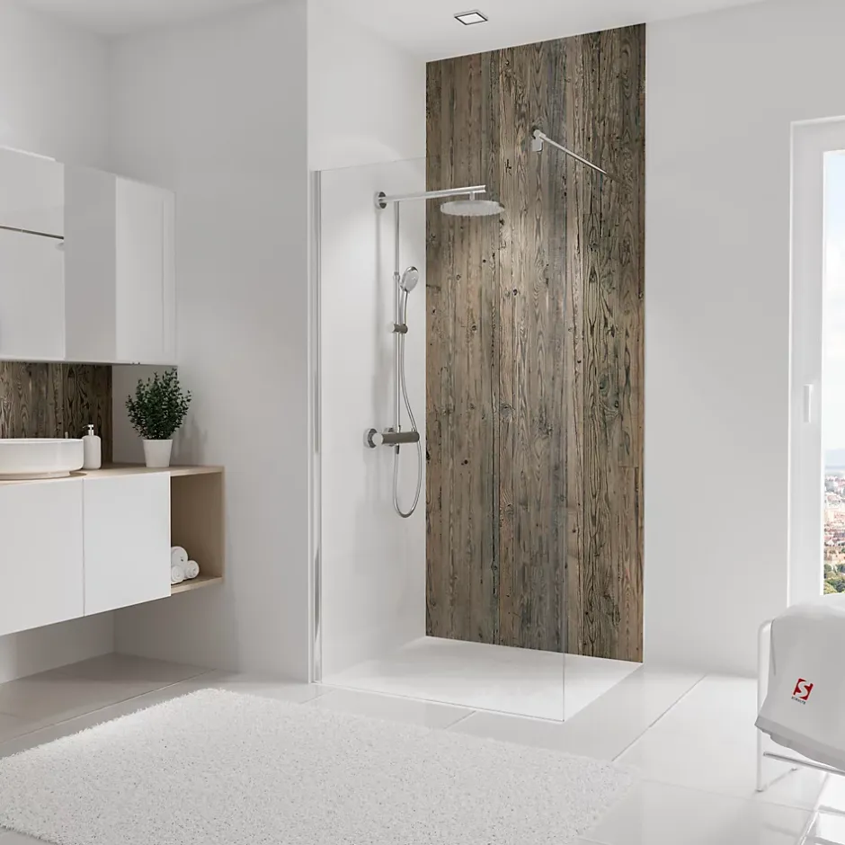 Panneau mural de salle de bains l.100×255 cm, décor bois, Schulte DécoDesign