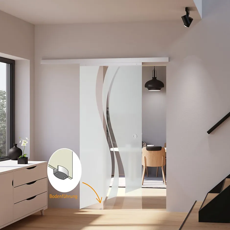 Élément décoratif et moderne à part entière, une porte intérieure coulissante sépare les pièces et crée une ambiance cocooning. Que ce soit à la maison ou au bureau, elle se pose partout, peu importe la taille et le style de votre espace. AVANTAGES PRODUIT :Facile : réaménager, agencer et décorer sans gros travaux de rénovationLiberté de mouvement: circulation plus fluide entre les pièces. Facilite les déplacements des personnes à mobilité réduiteSéparation de pièce: limite la propagation des odeurs de cuisine, divise une grande pièce en deuxÉconomie d’énergie: maintient la température dans les piècesSécurité: fini la porte qui claque lors d’un courant d’airParoi vitrée: laisse passer la lumière et donne une sensation de volumeMontage: possible au-dessus d’un encadrement de porte déjà existant grâce à une cale d’épaisseur incluse dans la livraisonSystème coulissant: particulièrement silencieuxSystème coulissant sur roulement à billes: ne nécessite aucun entretienPoignées autocollantes et ergonomiques : se pose à la hauteur souhaitéeDÉTAILS TECHNIQUES :Porte coulissante d’intérieur en verre noir, rail en aluminium inoxydable, 1 vantailSystème en applique peu encombrant. Coulisse devant le murParoi en verre de sécurité de 8 mm d’épaisseur, bords du verre polisLargeur passage maximal : jusqu’à 895 mmHauteur passage maximal : jusqu’à 2147 mmKit de montage avec des vis et des chevilles, poignées, guide au sol, rail et cache rail en aluminium inclusLargeur rail : 2100 mmHauteur rail : 36,5 mmProfondeur rail : 34 mmHauteur cache rail : 60 mmLa cale d’épaisseur en aluminium inclus comble un écart allant jusqu’à 16 mm lorsqu’il y a un encadrement de porte déjà existant ou une plintheIntervalle porte / mur : 13 mm (sans cale d’épaisseur) – 29 mm (avec cale d’épaisseur)Chariot avec roulement à billesPoignées à monter à gauche ou à droitePorte avec trous de montageButée d’arrêt double Softclose pour une fermeture tout en douceur