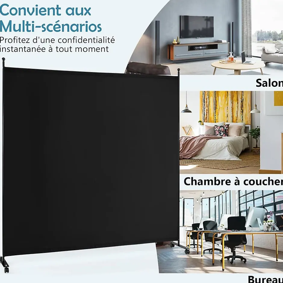 Notre paravent est idéal pour créer un espace privé ! Fabriqué en tissu polyester de haute qualité et soutenu par un cadre métallique, il est solide, stable, respirant, résistant à l’usure et a une longue durée de vie. La conception opaque permet de mieux protéger votre vie privée. Ce paravent est équipé de 4 roues universelles verrouillables pour faciliter son déplacement. Avec son apparence simple et élégante, ce paravent multifonctionnel peut bloquer la lumière du soleil et décorer la pièce. Il est parfait pour la maison, le bureau, l’hôtel, l’école, l’hôpital, etc.
