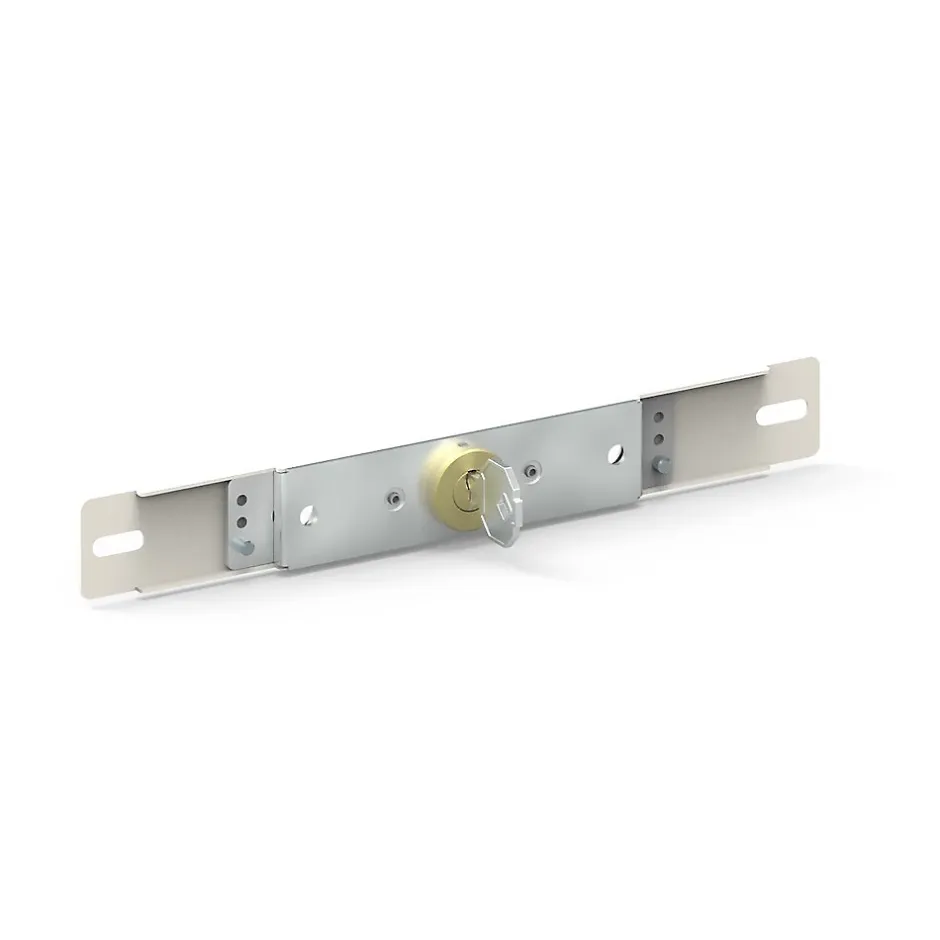 Serrure universelle encastrée pour lame intermédiaire ou finale de volet roulant Acier finition blanc A utiliser avec une plaque de finition 2 clés incluses Quantité : 1 Attention : Il existe une multitude de tailles différentes. Merci de bien vérifier vos cotes à l’aide des schémas avant de passer commande. Serrure à clé blanche encastrable pour lame finale ou intermédiaire.Compatible enroulement intérieur/extérieur.Fournie avec 2 clés.Dimensions : 220 x 28 mm.Serrure universelle à utiliser obligatoirement avec les plaques de finition WUH811M, WUH811N, WUH811P.