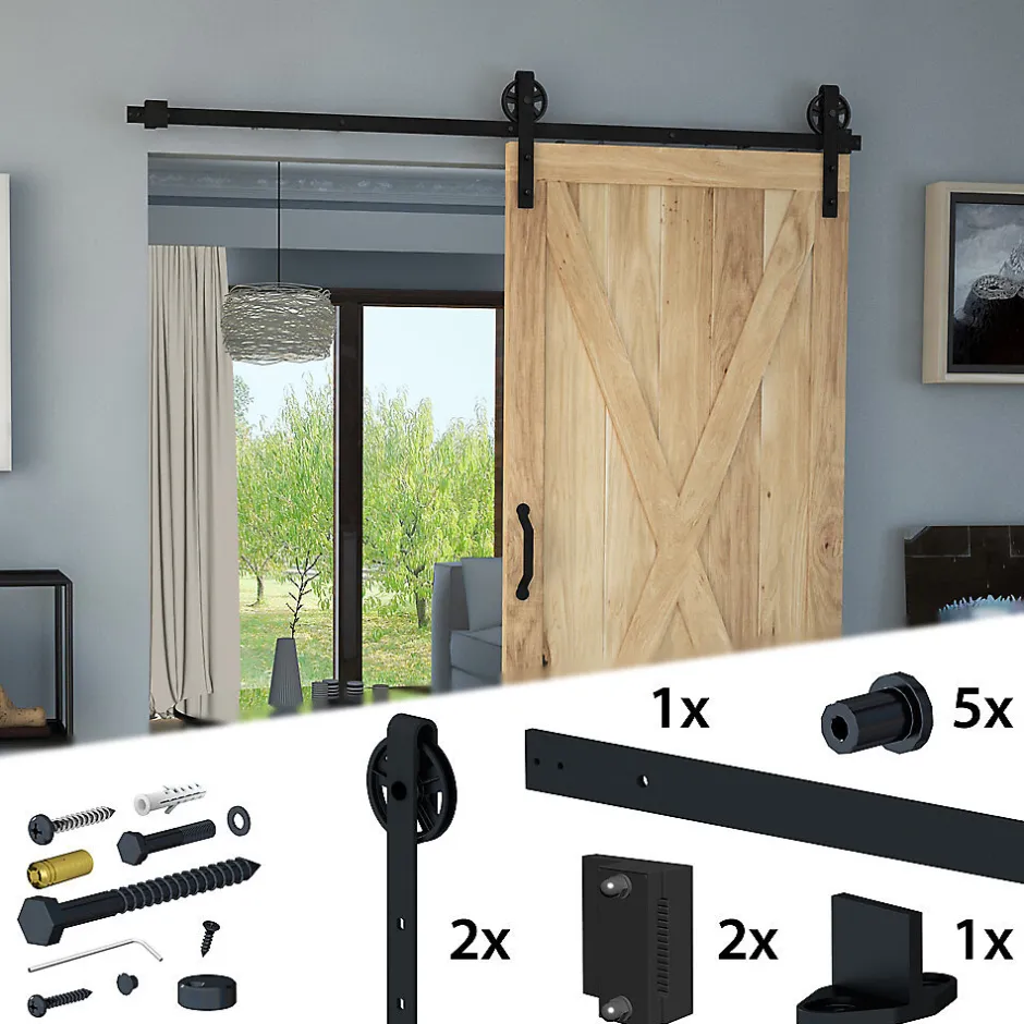 Système type Barn Door pour 1 porte de séparation Kit comprenant le rail et les accessoires pour une pose facile Fixation : en applique Poids max. de la porte : 100 kg Longueur max. de la porte : 950 mm Epaisseur de la porte : 35-45 mm Longueur du rail : 1,90 m Diamètre des roues : 120 mm Matière des roues : polymère Couleur : noir mat Garantie : 5 ans Système coulissant SLID’UP 240 type Barn Door pour 1 porte de séparation – rail de 1,90 m – coulissant suspendu fixé en applique.Poids maximum de la porte : 100 kgLargeur maximum de la porte : 950 mmÉpaisseur de la porte : entre 35 et 45 mmLongueur du rail : 1,90 mDiamètre des roues : 120 mmMatière des roues : polymèreFixation : en appliqueCouleur : noir mat Attention : Porte non comprise dans le kit. Robuste, fiable et très esthétique, le système coulissant SLID’UP 240 type Barn Door pour porte de séparation vous assure un déplacement à la fois fluide et silencieux grâce aux montures sur roulements à billes de grande qualité.Ce système type « porte de grange » ou « porte d’atelier » est très facile à monter et vous permettra de positionner votre porte dans n’importe quelle position en toute simplicité.La gamme SLID’UP 240 s’inspire de la décoration industrielle moderne, où les éléments mécaniques sont visibles afin d’apporter une touche de singularité à votre intérieur. De plus, la surface noir mat est résistante à l’usure mécanique et à la poussière. Contenu du kit : – 1 rail de 1,90 m- 2 montures sur roulements à billes- 2 butées- 1 guide bas- 1 lot de visserie Options : SU5379 : amortisseur ferme-porte <a