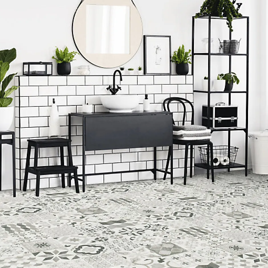 Marque : Tarkett – Iconik Resist – Almeria Black. Sol PVC en rouleau, imitation carreaux de ciment pour une déco tendance. Les sols PVC Lino répondent aux exigences les plus strictes en termes de qualité de fabrication, d’hygiène et de sécurité, ainsi que d’environnement. • CHAUFFAGE PAR LE SOL : Oui (27°C max.) • CLASSE COV : A+ • COMPOSITION : Base de poly(chlorure de vinyle) expansé (ISO 26986) • CLASSE FORMALDÉHYDE : E1 • CLASSEMENT EUROPÉEN : Classe 41 – Usage modéré, Classe 32 – Usage normal : bureau, salle d’attente, hall d’hôtel, Classe 23 – Usage important : escaliers, entrée, couloir, • CLASSEMENT FEU : Cfl-s1 (ancienne norme M3) • COMPORTEMENT ÉLECTROSTATIQUE : 2Kv • ÉPAISSEUR COUCHE D’USURE : 0,35 mm • ÉPAISSEUR TOTALE : 2,4 mm • ISOLATION PHONIQUE : 16 dB • GARANTIE : 15 ans en usage résidentiel • POIDS TOTAL : 1580 g/m² • RÉSISTANCE THERMIQUE : 0,04 m² K/W • RÉSISTANCE AU GLISSEMENT : R10 • SOLIDITÉ DES COULEURS : 6 • RECYCLABLE : Oui • RÉSISTANCE AUX CHAISES À ROULETTES : Oui (pose collée) • RÉSISTANCE CHIMIQUE : Très bonne • RÉSISTANCE AU POINÇONNEMENT : 0,20mm • STABILITÉ DIMENSIONNELLE : 0,40 % • TRAITEMENT DE SURFACE : Extreme Protection • Tolérance sur la largeur et la longueur : ±3% • IMPORTANT : Merci de noter que nous ne pouvons pas garantir une même teinte de couleur sur nos différentes largeurs de rouleaux (2m, 3m ou 4m de large), information à bien prendre en considération si vous souhaitez faire un raccord à partir de 2 largeurs de rouleaux différentes.