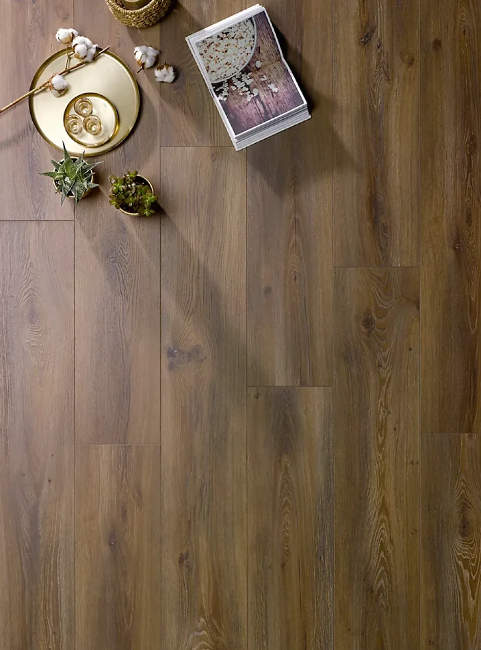 Sol stratifié à clipser Calypso brun 8 mm L.128.6 x l.19.2 cm