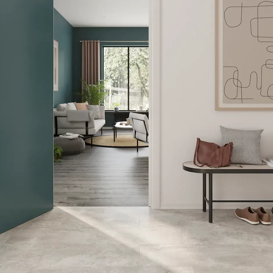 Sol stratifié clipsable Elstree aspect pierre naturelle 8 mm compatible pièces humides