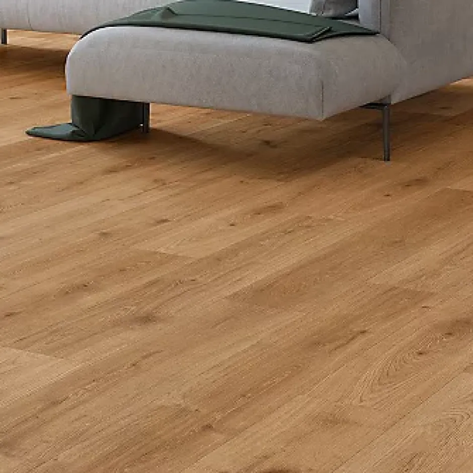Sol stratifié Cortland GoodHome, passage élevé AC4, effet chêne miel, L.128,5 cm x l.19,2 cm x ép.8 mm, résistant à l’eau