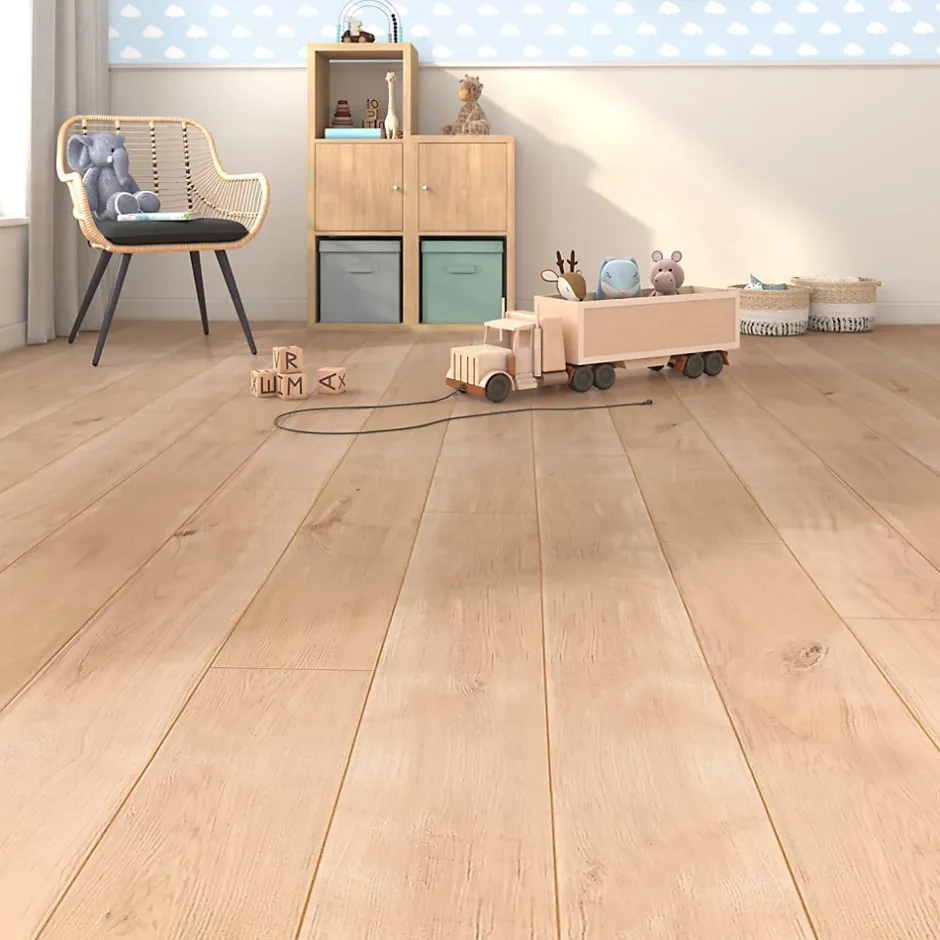 Ce sol stratifié Goodhome imite parfaitement l’apparence du bois naturel. Les lames chanfreinées 4 côtés confèrent un aspect bois authentique à votre sol. Ce sol est parfait pour les couloirs, les salons et les chambres. Il est facile à installer grâce à un système de pose clipsable simple. Tous nos sols stratifiés sont issus de forêts gérées durablement. Les sols stratifiés doivent être conçus pour durer, c’est pourquoi les nôtres sont garantis 15 ans. Nous vous recommandons d’utiliser une sous-couche adaptée pour de meilleures performances thermiques et acoustiques de votre sol. Le stratifié Gladstone coloris naturel est idéal pour les chambres et les espaces de vie