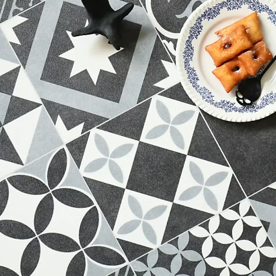Sol Vinyle Link Plus – Carreaux de ciment noir et blanc – Surface brillanteMarque : Beauflor B.I.G. Floorcoverings – Prima Plaza Amadora 990D »Link Plus », une collection de sols vinyles aux motifs actuels et très élégants ! D’une épaisseur de 2,80 mm, ce revêtement de sol, de style lino, est facile à poser et à nettoyer. Idéal pour un salon sans accès sur l’extérieur, une chambre, une salle de bain, un espace détente ou home office.Sol PVC sans métaux lourds, sans solvants, sans phtalates, sans formaldéhyde ni plastifiants nocifs.- CHAUFFAGE PAR LE SOL : Oui (27°C max.)- CARREAUX : 20 x 20 cm- CLASSE COV : A+- CLASSEMENT EUROPÉEN : Usage Domestique – Classe 22 : Trafic moyen (chambre, salon sans accès sur l’extérieur, hall d’entrée d’appartement, couloir, salle de bain)- CLASSEMENT FEU : Bfl-s1 (ancienne norme M3)- CLASSE FORMALDÉHYDE : E1- COMPORTEMENT ÉLECTROSTATIQUE : – de 2Kv (sur ciment)- ÉPAISSEUR COUCHE D’USURE : 0,20 mm- ÉPAISSEUR TOTALE : 2,8 mm- INCURVATION : 8- ISOLATION PHONIQUE : 16 dB- POIDS TOTAL : 1600 g/m²- RÉSISTANCE AU POINÇONNEMENT : 0,35 mm- RECYCLABLE : Oui- RÉSISTANCE THERMIQUE : 0,025 m² K/W- SOLIDITÉ À LA LUMIÈRE : 6- RÉSISTANCE AU GLISSEMENT : R10- RÉSISTANCE CHIMIQUE : Très bonne- STABILITÉ DIMENSIONNELLE : 0,40 %- TRAITEMENT DE SURFACE : Extreme Protection• Tolérance sur la largeur et la longueur : ±3%IMPORTANT : Nuances de couleurs de bain sur nos sols PVCMerci de noter que nous ne pouvons pas garantir une même teinte de couleur sur nos différentes largeurs de rouleaux (2m, 3m ou 4m de large).Information à bien prendre en considération si vous souhaitez faire un raccord, dans une même pièce, à partir de 2 largeurs de rouleaux différentes.