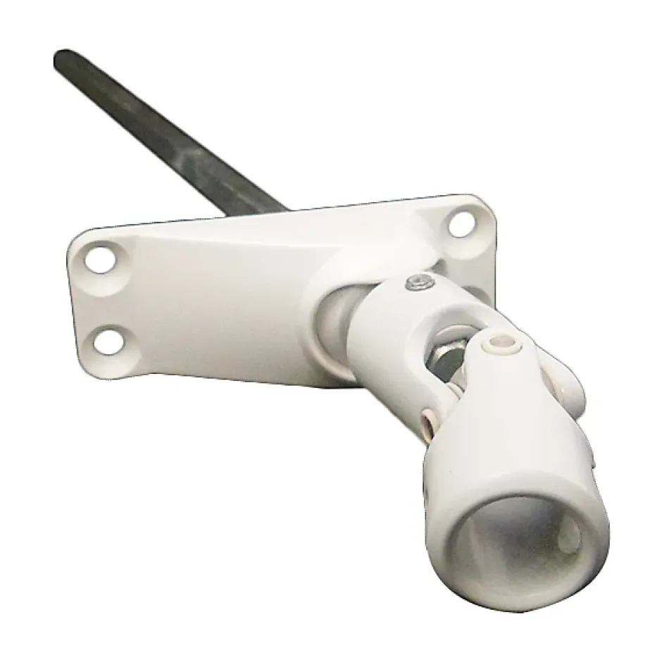 BLOC GUIDE GENOUILLERE A 60°Sortie de caisson bloc guide genouillère pour volet roulant pour une pose en façade ou sous caisson en traditionnel, réno et coffre PVC.Ce bloc guide genouillère est livré en sachet avec : 1 vis M5 réf. F780 (liaison sur la manivelle ou tringle oscillante),4 vis TF D3.9 L=19 réf. 4210,1 manchon d'étanchéité.Caractéristiques : Bâti : Polyamide teinté masse.Rotule : P.O.M. teinté masse.Genouillère : Acier revêtu polyester.Tige 6P7 : acier zingué passivé.Longueur tige : 315 mmLongueur de l'embase : 62mmLargeur de l'embase : 22mmCouleur : Blanc
