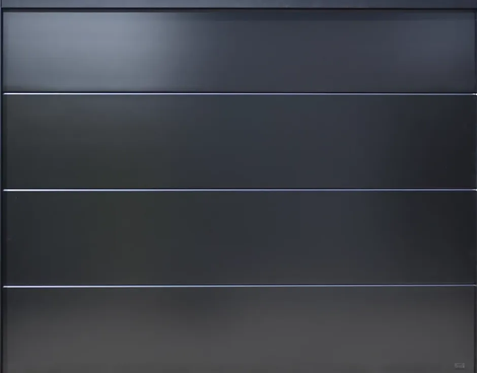 Livraison comprise : 10 à 22 jours ouvrés avec déchargement assuré par 2 chauffeurs.En France Métropolitaine uniquement, hors Corse et sous réserve d’un accès poids-lourd de 26 TonnesPorte de garage sectionnelle isolée 40mm livrée pré-assembléemotorisée avec un moteur ONE et 2 télécommandes fournies.Cette porte sectionnelle a un tablier fait en panneaux sandwich composés de 2 faces en acier pré-laqué de 0.45mm d’épaisseur, rempli de 40mm de mousse isolante en polyuréthane.Les panneaux de cette porte sectionnelle ont un aspect extérieur Polygrain (sablé) couleur Noir 2100.La face intérieure des panneaux est blanche.Cette porte sectionnelle est idéale pour sécuriser et isoler votre garage, en toute simplicité grâce à son montage utra-rapide en 2h chrono, installation et programmation du moteur incluse.Pour installer cette porte en applique, vous avez besoin d’un espace de 75mm minimum à gauche et à droite de votre ouverture (ce que nous appelons les écoinçons) et d’une retombée de linteau de 150mm minimum.L’équilibrage de la porte est assuré par 4 ressorts de traction dissimulés dans les montants verticaux de porte.Le moteur ONE est simple à programmer et fiable et peut mémoriser jusque 20 télécommandes.Largeur d’ouverture : 250 cmHauteur d’ouverture : 200 cmLargeur hors-tout : 265 cmHauteur hors-tout : 209 cmCouleur : Noir 2100Type de panneau : Polygrain (lisse sablé)Manoeuvre : Motorisation ONE + 2 télécommandesAttention, ces panneaux foncés ne doivent pas être exposés directement aux rayons du soleil. Une exposition inadaptée peut provoquer un phénomène de cintrage du panneau, ainsi que d’autres phénomènes parallèles liés à la couleur noire. La température de ces panneaux noirs exposés au soleil peut avoisiner les 100°
