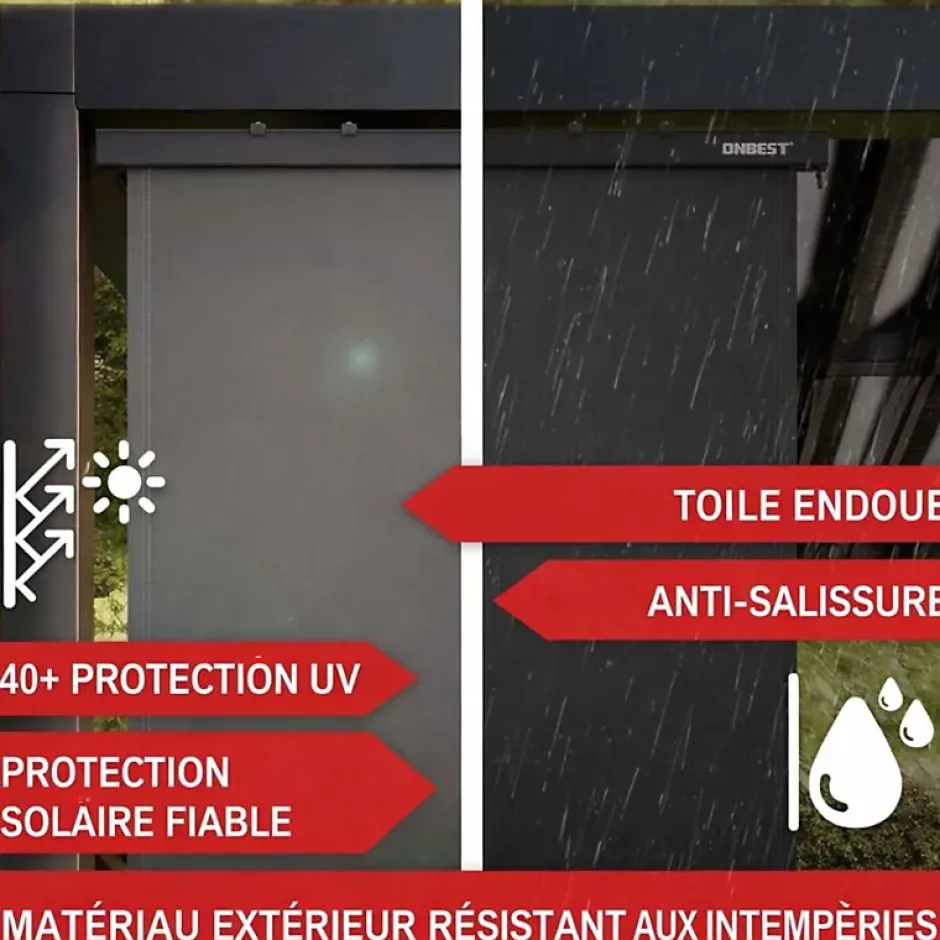 La toile du store est en polyester enduit, ce qui la rend particulièrement résistante aux intempéries, déperlante et résistante aux UV. Elle offre ainsi une excellente protection contre les rayons UV nocifs.Toile anthracite élégante, extensible jusqu’à 250 cmInstallation facileKit de fixation inclus pour une installation rapideBoucles de sécurité pour une meilleure stabilité par temps venteuxEnroulable : OuiLargeur totale : 160 cmHauteur totale : jusqu’à 250 cmRéglable individuellement : OuiManivelle amovible extensible jusqu’à 250 cm incluseFixation : Boucles de fixation intégréesMatière : Polyester enduitDéperlant : OuiTechnologie : Mécanisme d’enroulementRésistant aux UV : OuiIndice de protection UV : 40+Utilisation : Intérieur comme alternative aux volets roulants et Extérieur comme pare-soleil et brise-vue pour balconRésistant aux intempéries : OuiProfitez d’une protection solaire et d’une intimité optimales avec le store vertical. Que ce soit sur le balcon, dans le salon ou au bureau, ce store banne apporte une touche esthétique et crée d’agréables zones ombragées.Support client et SAV en Français – Pas de livraison dans le DOM TOM et la Corse.