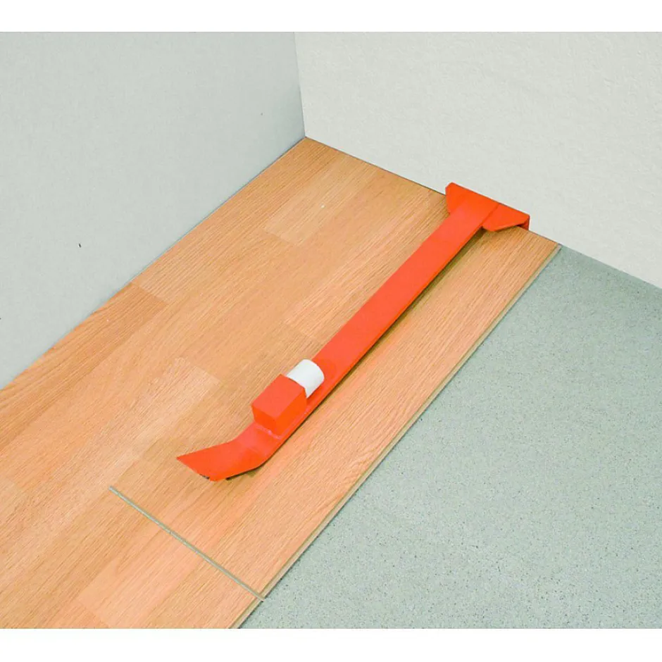 Système pied de biche intégré.Platine large pour tirage parfait.Revêtu de feutrine pour éviter les rayures sur les lattes déjà assemblées.Pour sols stratifiés clipsables et emboîtables.