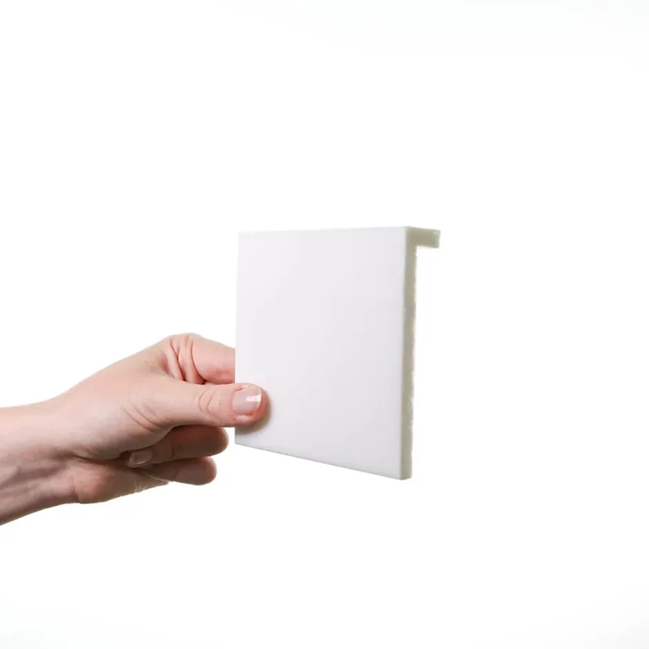 Idéale pour des rénovations : une surplinthe parfaitement imperméable qui peut être peinte. La surplinthe SX171 a été conçue afin de couvrir simplement une plinthe existante (max. 1,4 x 8,8 cm). Quand la vieille plinthe est difficile à enlever ou pour y dissimuler les câbles d’électricité. Les plinthes Orac Decor sont résistantes à l’eau et aux impacts. Couleur : blanc, facile à peindre Matériau : duropolymer (un polymère extrudé résistant aux impacts) Une boite de découpe est nécessaire pour la découpe d’angle La plinthe Orac Decor se peint directement à la peinture acrylique Vendue à l’unité