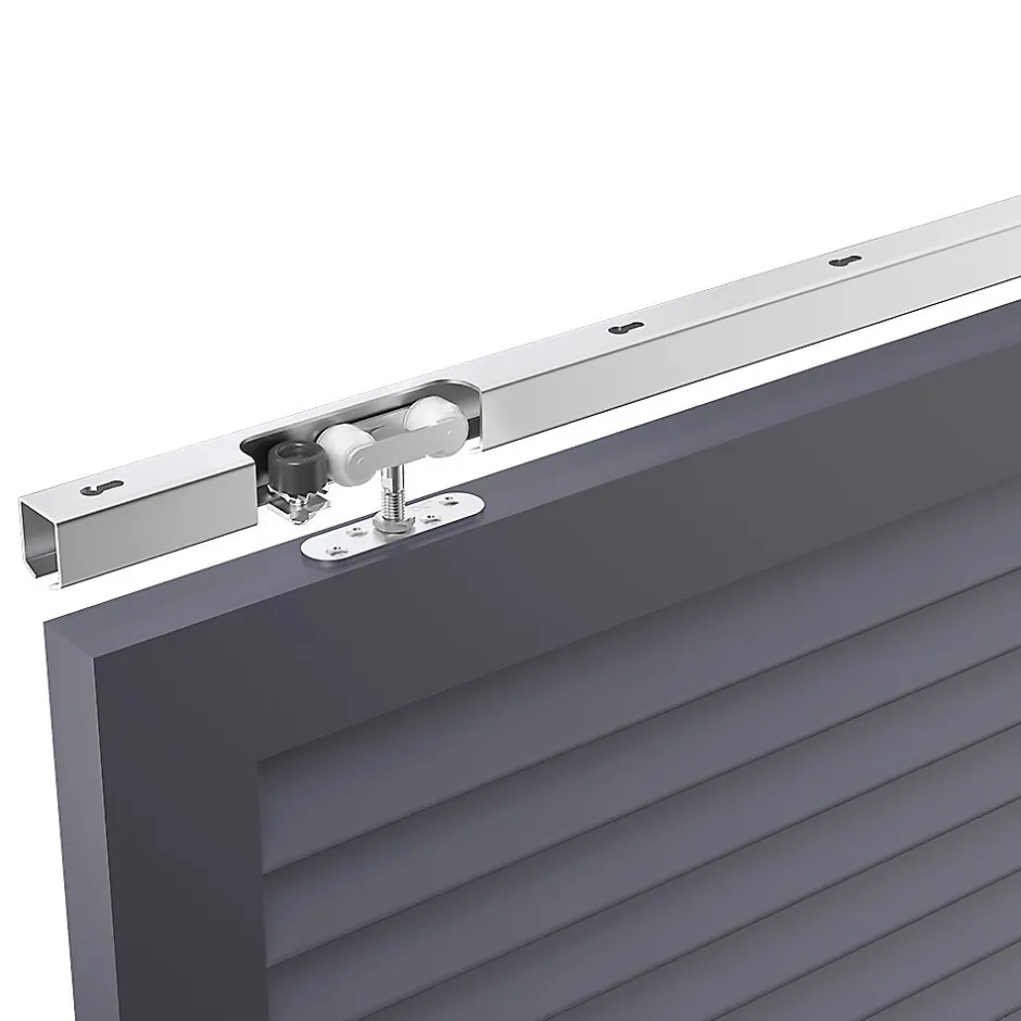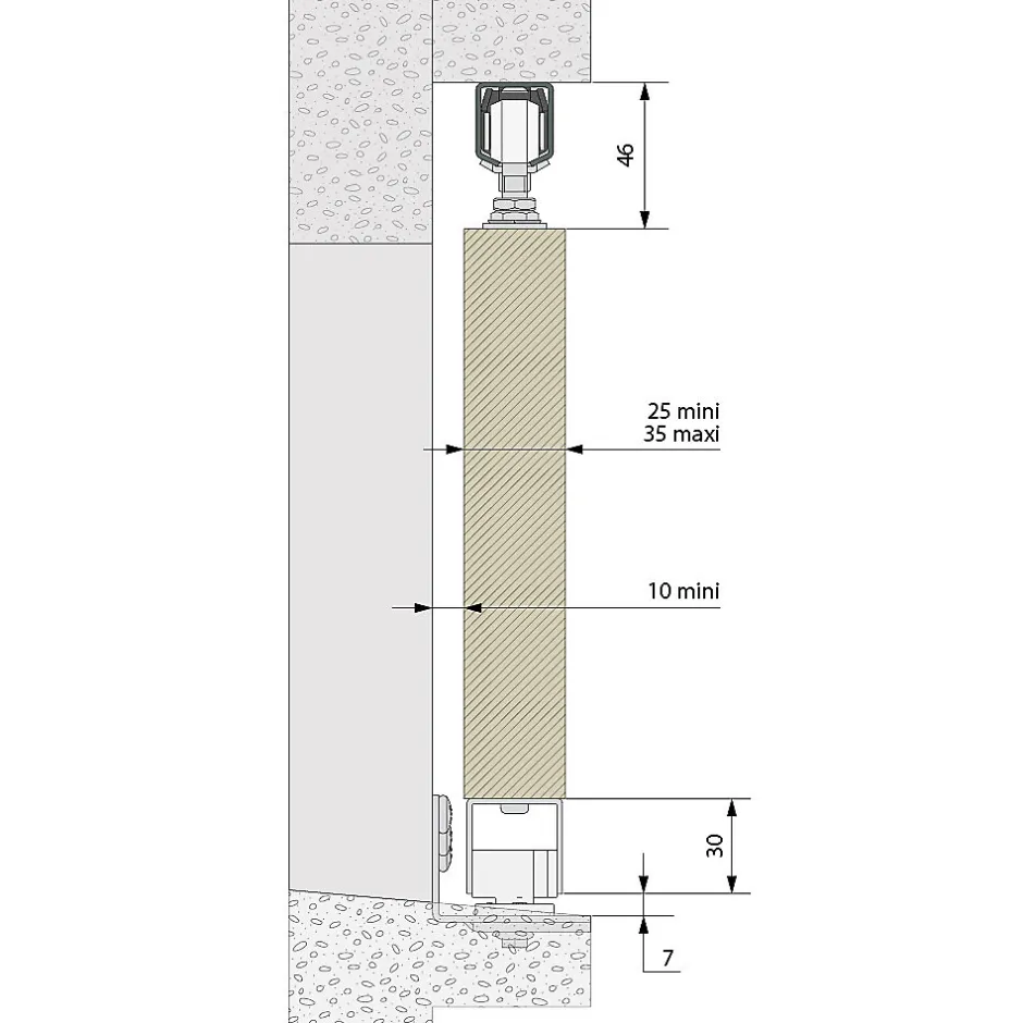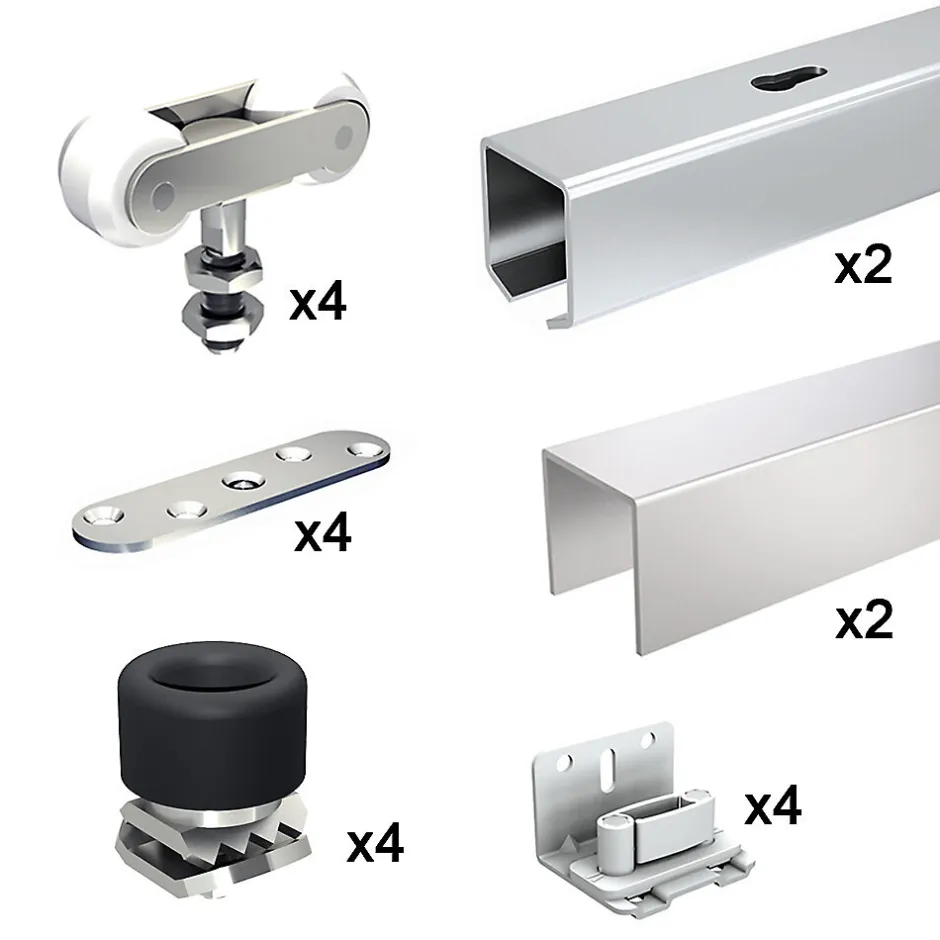 Système coulissant SLID’UP 1400 pour volet 2 panneaux Montage au plafond (sous linteau) Poids max des panneaux : 30 kg chacun Rails en acier galvanisé : 2 x 1,95 m Largeur max de la baie : 1890 mm Garantie : 5 ans Attention : Volet non compris dans le kit. Système coulissant SLID’UP 1400 pour volet permettant le déplacement manuel de deux panneaux coulissants de 30 kg maximum (bois, aluminium, PVC…).Ce kit est conçu pour un montage au plafond (sous linteau).Les montures en acier avec galet en nylon assurent un déplacement à la fois fluide, silencieux et sans effort.Tous les éléments nécessaires sont fournis dans le kit pour un montage en façade rapide et facile. Spécifications à respecter : – Largeur max de la baie : 1890 mm- Poids max des panneaux : 30 kg chacun- Épaisseur des panneaux : 25-35 mm Contenu du kit : – 2 rails en acier galvanisé longueur = 1,95 m- 2 profils de guidage en U longueur = 1,95 m- 4 montures sur axe lisse avec galets en nylon- 4 platines en acier à visser sur chant (épaisseur panneau 20 mm min)- 4 guides bas réglables sur équerre- 4 butées à pince (force réglable) Options : 1313 : verrou de volet coulissant en métal SU5030 : kit de synchronisation pour 2 panneaux Toutes les pièces détachées pour SLID’UP 1400
