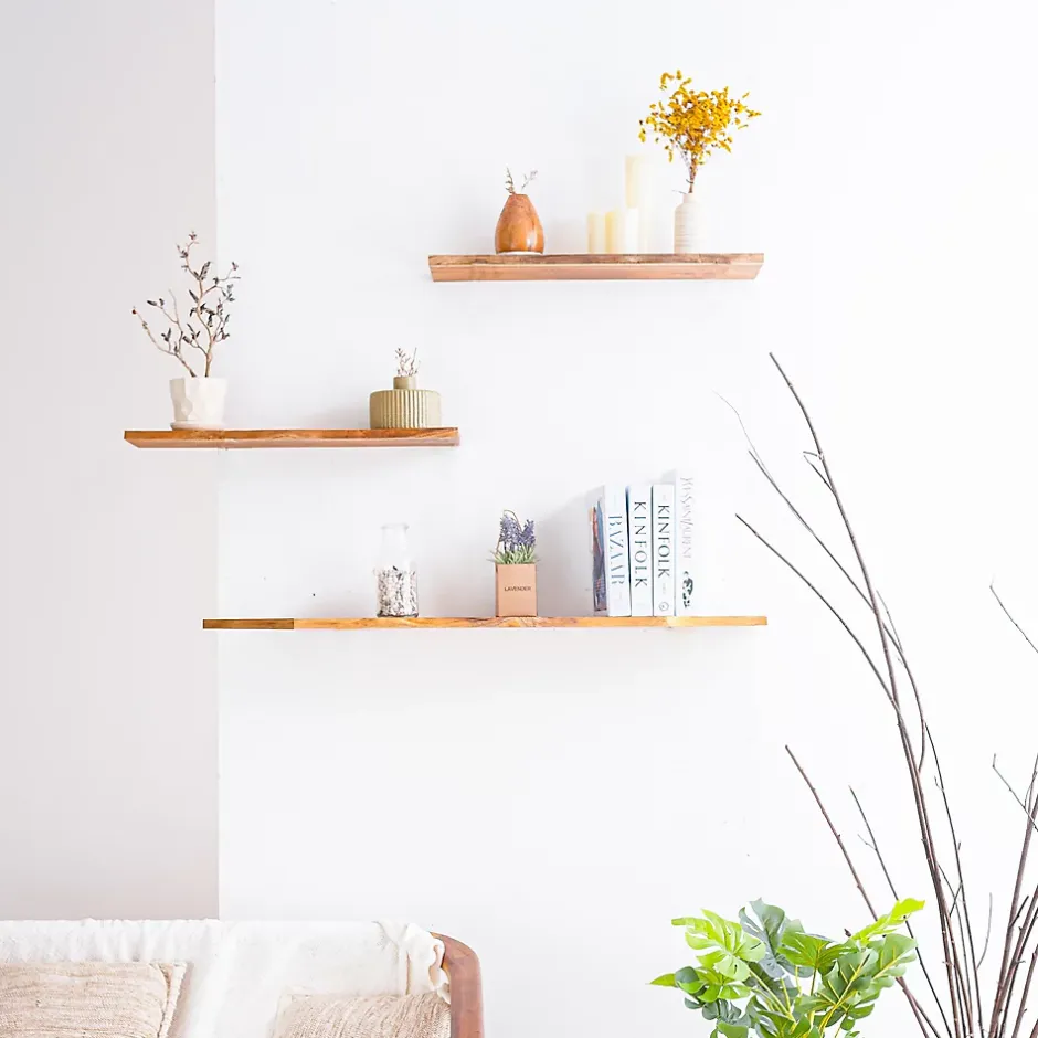 Tablette murale en Teck huilée L.90Xl.18cm ep.18mm