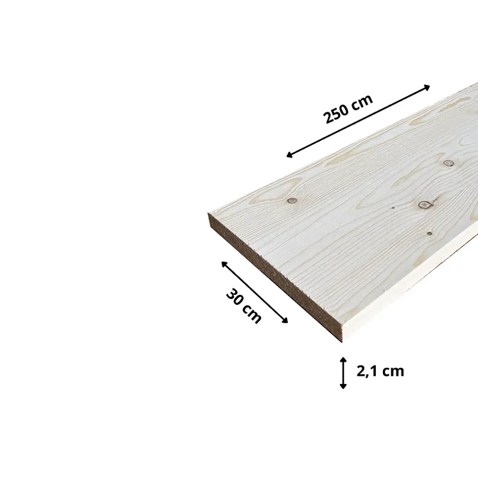 Tablette Sapin.- Dimensions .L.250 X P.30 cm, Ep.21 mm.- Bois massif grande qualité.- Simple à entretenir.- A vernir ou huiler des 2 côtés avant usage pour protéger son aspect.- Pensez à laisser votre tablette s’acclimater à la pièce de destination pendant au moins 48 heures.- Tablette bois massif panneauté.- Film individuel.- Facile à poser et à découper si besoin.- Rangement idéal pour votre cuisine, salle de bain ou votre bureau afin d’optimiser l’espace.- Expert en panneaux et plans de travail bois massif.- Nos maitres mots sont qualité, disponibilité et réactivité.- Livraison rapide partout en France.