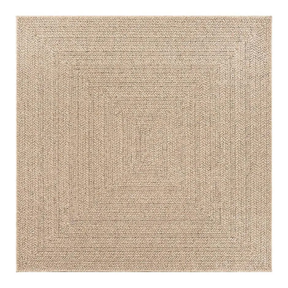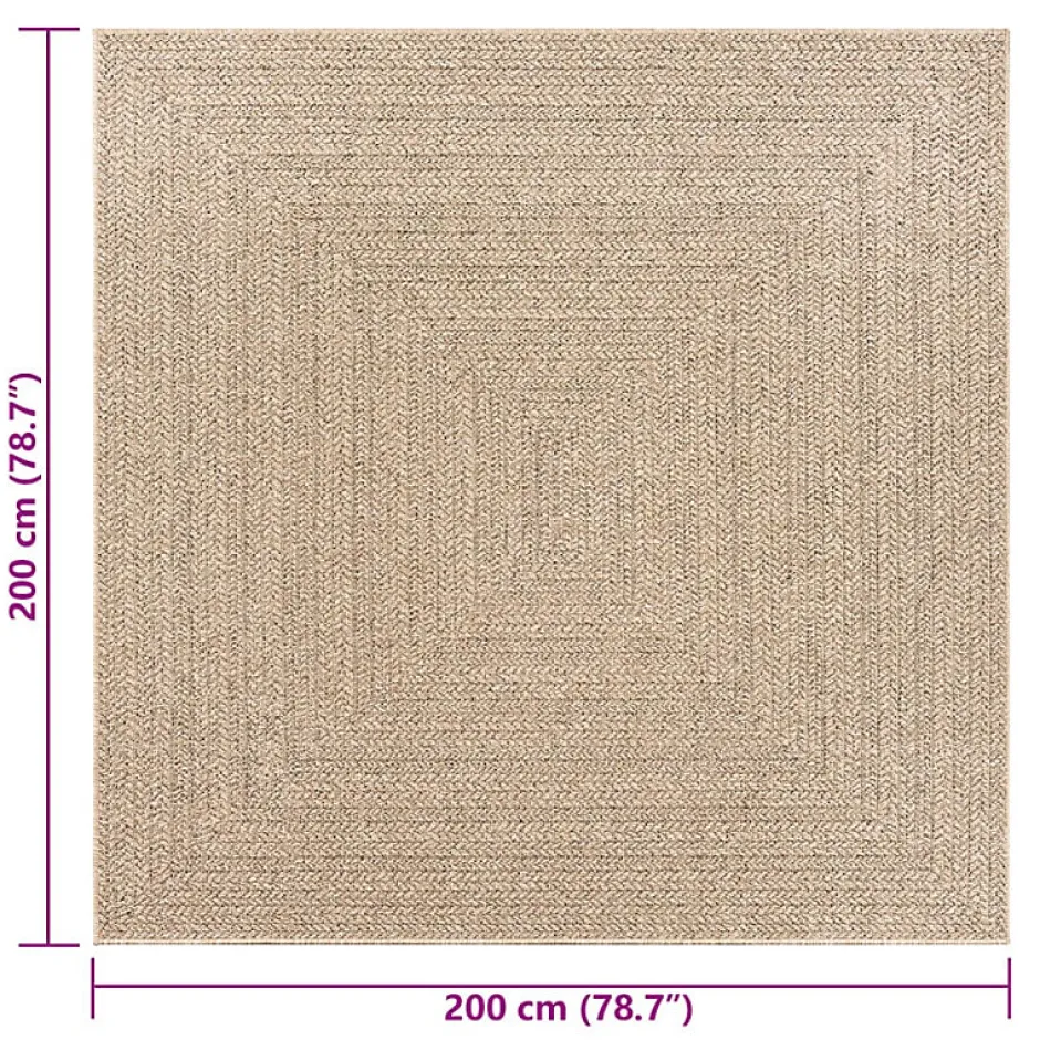 Tapis d’intérieur et d’extérieur en polypropylène aspect jute, dimensions 200×200 cm, léger, durable, facile à entretenir, résistant aux UV et intempéries. Idéal pour terrasses, salons ou chambres.