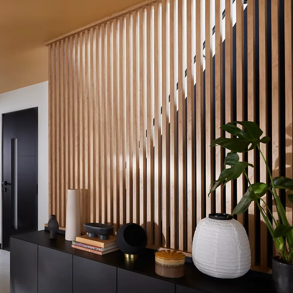 Redéfinissez vos espaces avec notre claustra décoratif en MDF revêtu chêne, une solution d’aménagement intérieur moderne et pratique. Parfait pour créer une séparation élégante entre votre cuisine et votre séjour, ou pour structurer un coin bureau, ce panneau ajouré apporte caractère et fonctionnalité. Son design universel à bords carrés s’intègre harmonieusement à tout style de décoration. Livré en kit complet avec éléments de connexion, il est conçu pour une installation simplifiée, même pour les bricoleurs novices. Les étagères intégrées offrent un support idéal pour vos objets décoratifs. Ce claustra en chêne imprimé est la réponse pour optimiser votre habitat avec style et sans gros travaux.