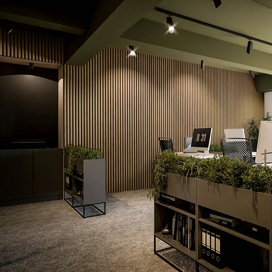Les lamelles LINEA SLIM sont fabriquées en MDF épais, ce qui leur confère un usage d’isolant acoustique efficace. Les lamelles décoratives s’intègrent parfaitement dans différentes pièces de la maison.