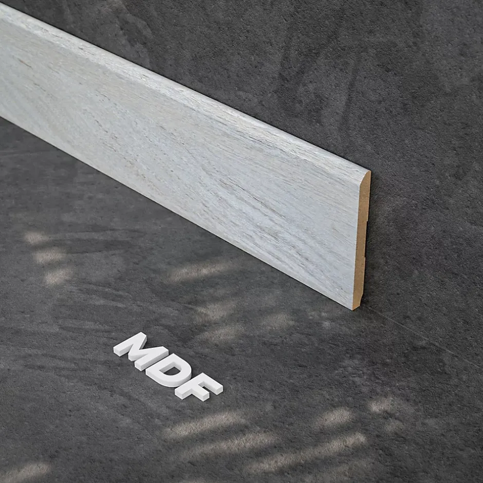 Plinthe MDF chêne cendré 2 m Notre plinthe MDF chêne cendré 2 m apportera, de toute évidence, de la modernité à votre intérieur pour une déco tendance. Élément de finition, la plinthe MDF chêne cendré assure aujourd’hui de multiples fonctions. En premier lieu, elle assure la protection des bas de murs, souvent très exposés aux chocs et mauvais coups (balais, aspirateur…). Dans un second temps, elle vient dissimuler de nombreuses anomalies (jours éventuels entre le sol et le mur, découpes imparfaites de papier peint, etc…). En dernier lieu, notre plinthe MDF chêne cendré 2 m assure une transition visuelle entre le revêtement de sol et le mur. Vous hésitez encore sur le choix du décor ! Alors n’hésitez pas à découvrir tous les autres décors revêtus disponibles ! Plinthe MDF Fabrication française Dimensions