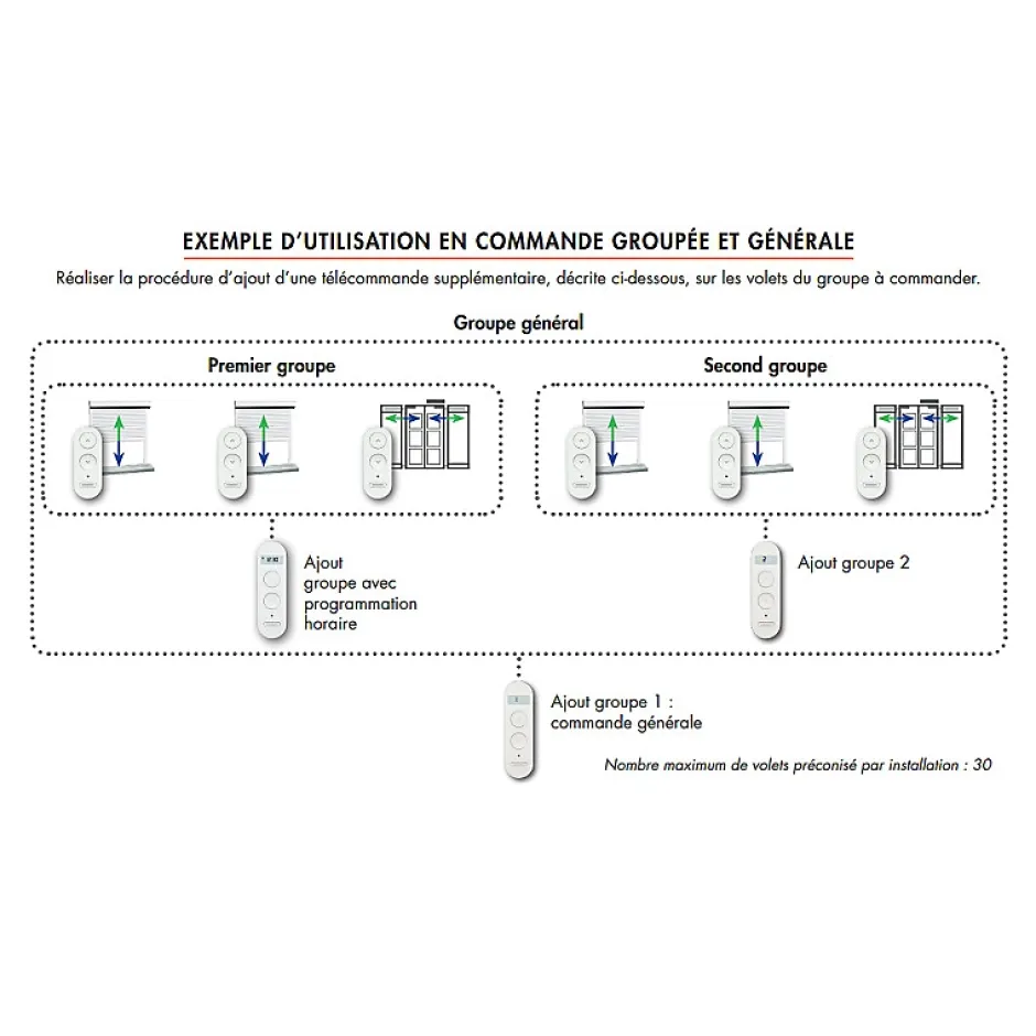 - Contrôle multi-canaux pour une gestion centralisée.Avec ses multiples canaux, cette télécommande permet de piloter plusieurs volets roulants individuellement ou simultanément, offrant un confort optimal pour gérer votre habitat.