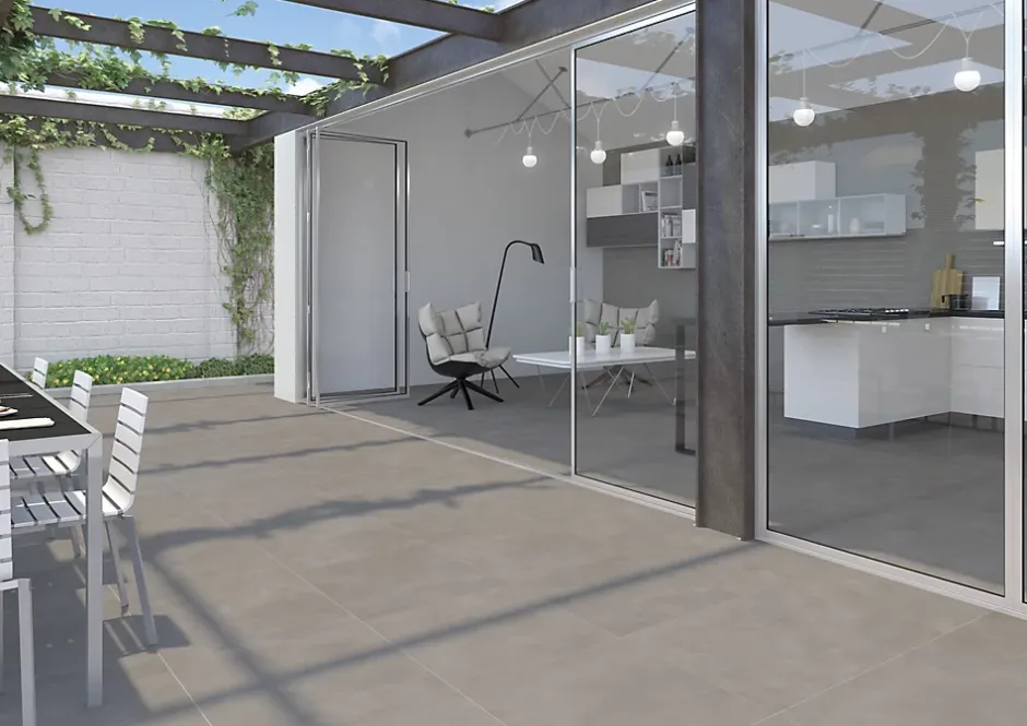 Ce carrelage en grand format de la gamme Marbella. avec son effet béton gris clair. s’intègrera parfaitement aux espaces spacieux en ajoutant une touche de modernité. Sa teinte grise polyvalente se marie harmonieusement avec toutes les couleurs et styles d’intérieur et d’extérieur.