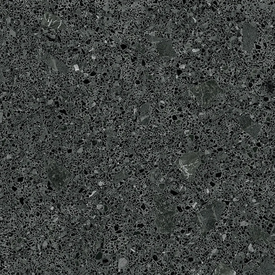 Le carrelage Straci noir 79.3 x 79.3 en grès cérame émaillé illustre bien la faculté de cette céramique à imiter d’autres matériaux. Le style est ici orienté vers l’aspect d’une pierre naturelle noir avec ses éclats de minéraux avec différentes teintes sombres.