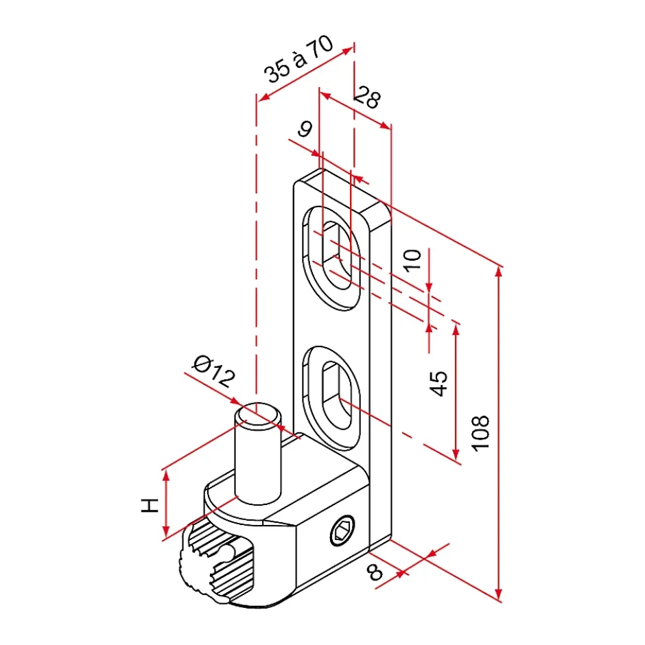 Le gond de portail MULTIFIX L de Tirard, est fabriqué à partir d’une combinaison robuste de cupro-aluminium pour son embase et son oreille. Ce choix de matériau garantit une excellente résistance à la corrosion ainsi qu’aux diverses conditions climatiques, ce qui rend ce gond particulièrement adapté pour les utilisations extérieures sur le long terme.Cette pièce est spécialement conçue pour faciliter l’installation lors de projets d’aménagement extérieur. La structure du gond MULTIFIX L permet un montage simple et efficace, optimisant le temps d’installation tout en assurant une fixation solide.Grâce à sa conception bien pensée, le gond de portail MULTIFIX L assure une utilisation quotidienne fiable et fonctionnelle. Les utilisateurs bénéficient ainsi d’une solution pratique et durable pour l’installation de leur portail, avec une sécurité accrue et une maintenance réduite. Caractéristiques techniques :Matière : cupro-aluminiumDiamètre : 12 mm