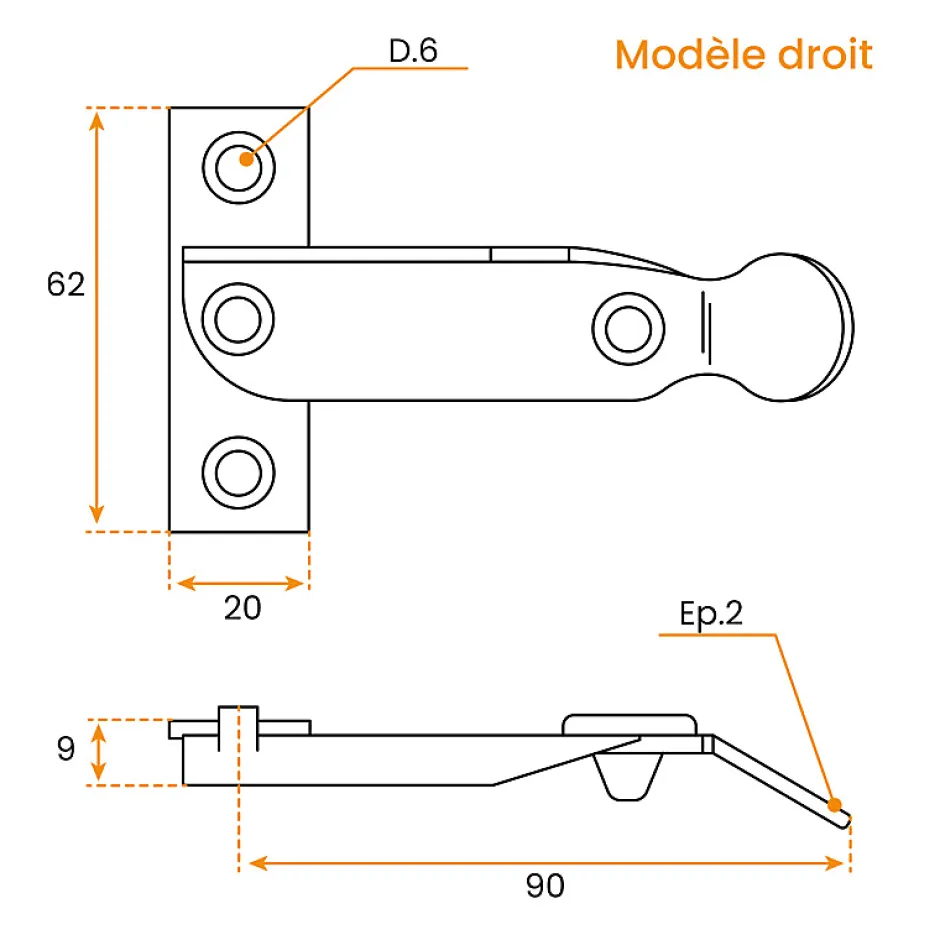 L’Arrêt de Volet Battant St Brieuc avec Butée est un accessoire de quincaillerie conçu pour maintenir vos volets battants ouverts en toute sécurité. Avec sa longueur de 90 mm et sa butée intégrée, il offre une solution fiable et esthétique pour vos volets, tout en assurant une résistance optimale aux intempéries.Caractéristiques techniques : – Type de produit : Arrêt de volet battant avec butée- Modèle : St Brieuc- Côté : Droit- Longueur du levier : 90 mm- Matière : Acier- Fixation : À visser (vis non incluses)- Compatibilité : Volets battants en bois, PVC ou aluminium- Utilisation : Maintien des volets en position ouverte- Fabrication : France Torbel