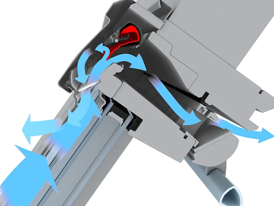 - Vitrage confort :- Economies d’énergie : Système VELUX Thermo Technology™ – Température idéale en été : Vitrage à contrôle solaire. 77 à 81% de la chaleur arrêtée en été. – Sécurité : Vitrage feuilleté de sécurité. Reste en place en cas de chocs (norme EN 12600).- Bruits atténués : Conforme à la réglementation acoustique. Classement de façade 30 dB – Rw = 35 (-1;-3) dB. Classement ACOTHERM AC1