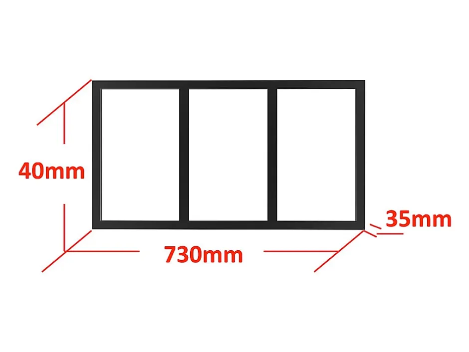 Vous souhaitez prolonger la hauteur de votre porte ? L’imposte BAYVIEW donnera la sensation d’une belle hauteur sous plafond tout en apportant de la luminosité supplémentaire. De plus, avec son style atelier elle viendra apporter une touche très esthétique dans votre intérieur.Caractéristiques Couleur (nuance) : Noir Matière (précision) : Verre trempé, Aluminium Epaisseur verre : 4 mm Epaisseur métal : 1 mm Finition : Mat Nombre de vitrages : 3 Utilisation : Intérieur Gamme : À la carte À monter soi-même : Poteau de terminaison non fourni : Installable sur supports en métal, bois, ciment et plâtre Epaisseur minimale du mur : 6 mm : Facile à assembler Code RAL : noir (9004)Dimensions Longueur : 73 cm Hauteur : 40 cm Profondeur : 3.5 cmLivraisonColisColis n°1 : Longueur 80 cm, Largeur 48 cm, Hauteur 6 cm, Poids 4 kg.