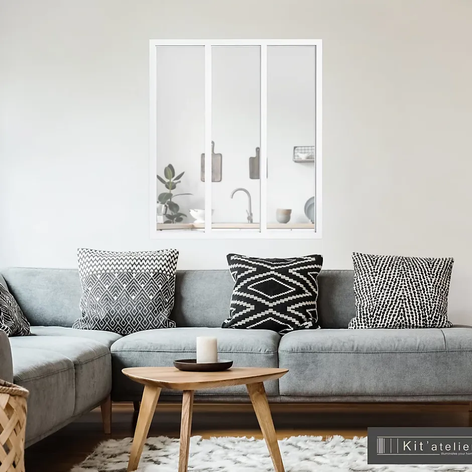 Verrière 3 carreaux transparents, coloris blanc H108 x l.93cm