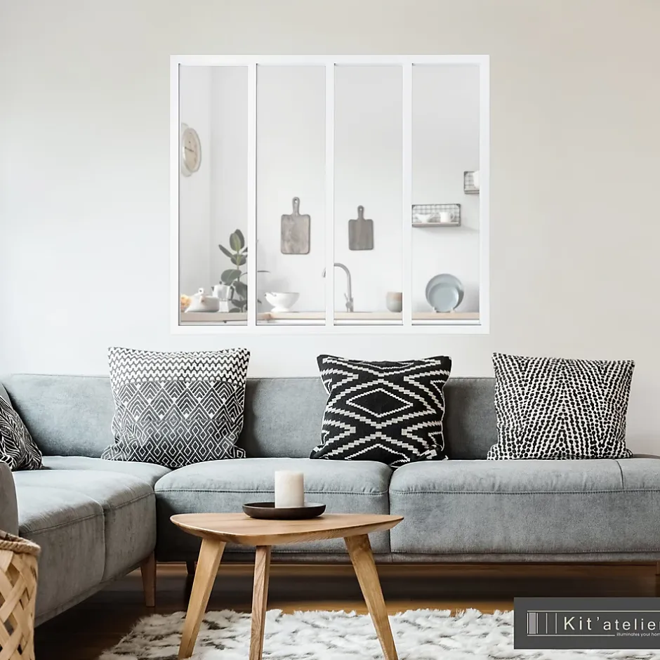 Verrière 4 carreaux transparents, coloris blanc H108 x l.123cm