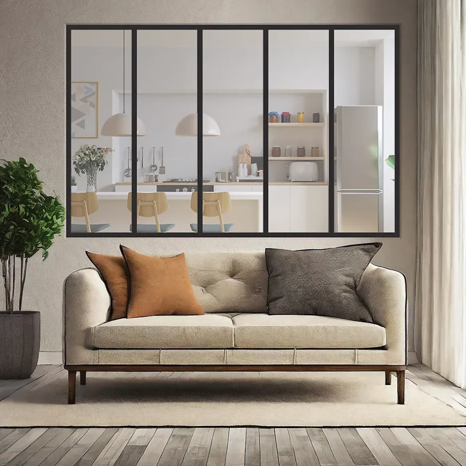 Verrière 5 grands carreaux - L x H : 168 x 110 cm - Laqué noir 9005 granité - vitrages inclus-MySystem